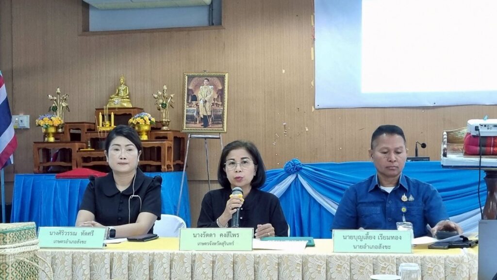 วันที่ 10 มีนาคม 2569 นางรัตดา คงสีไพร เกษตรจังหวัดสุรินทร์ และนางผ่องใส คงเกตุ หัวหน้ากลุ่มส่งเสริมและพัฒนาเกษตรกร สำนักงานเกษตรจังหวัดสุรินทร์ พร้อมด้วยนางศิริวรรณ ทัดศรี เกษตรอำเภอสังขะ เจ้าหน้าที่กลุ่มส่งเสริมและพัฒนาเกษตรกร สำนักงานเกษตรจังหวัดสุรินทร์ และเจ้าหน้าที่สำนักงานเกษตรอำเภอสังขะ เข้าร่วมประชุมเตรียมความพร้อมจัดงานโครงการคลินิกเกษตรเคลื่อนที่ในพระราชานุเคราะห์ สมเด็จพระบรมโอรสาธิราช ฯ สยามมกุฎราชกุมาร ประจำปีงบประมาณ พ.ศ. 2569 ไตรมาสที่ 2 ซึ่งกำหนดจัดงานในวันที่ 27 มีนาคม 2569 ณ สนามกีฬากลางตำบลพระแก้ว หมู่ที่ 13 ตำบลพระแก้ว อำเภอสังขะ จังหวัดสุรินทร์ โดยมีนายบุญเลี้ยง เรียมทอง นายอำเภอสังขะ เป็นประธานการประชุม ในการนี้ได้มีการลงนามในบันทึกข้อตกลงความร่วมมือ (MOU) เพื่อดำเนินโครงการ และลงพื้นที่สำรวจความพร้อมบริเวณจัดงาน ซึ่งการประชุมครั้งนี้มีหัวหน้าส่วนราชการระดับอำเภอ คณะผู้บริหารองค์การบริหารส่วนตำบลพระแก้ว กำนัน ผู้ใหญ่บ้านและผู้นำชุมชนในพื้นที่ตำบลพระแก้ว เข้าร่วมการประชุมเตรียมการดังกล่าว ณ ห้องประชุมองค์การบริหารส่วนตำบลพระแก้ว อำเภอสังขะ จังหวัดสุรินทร์