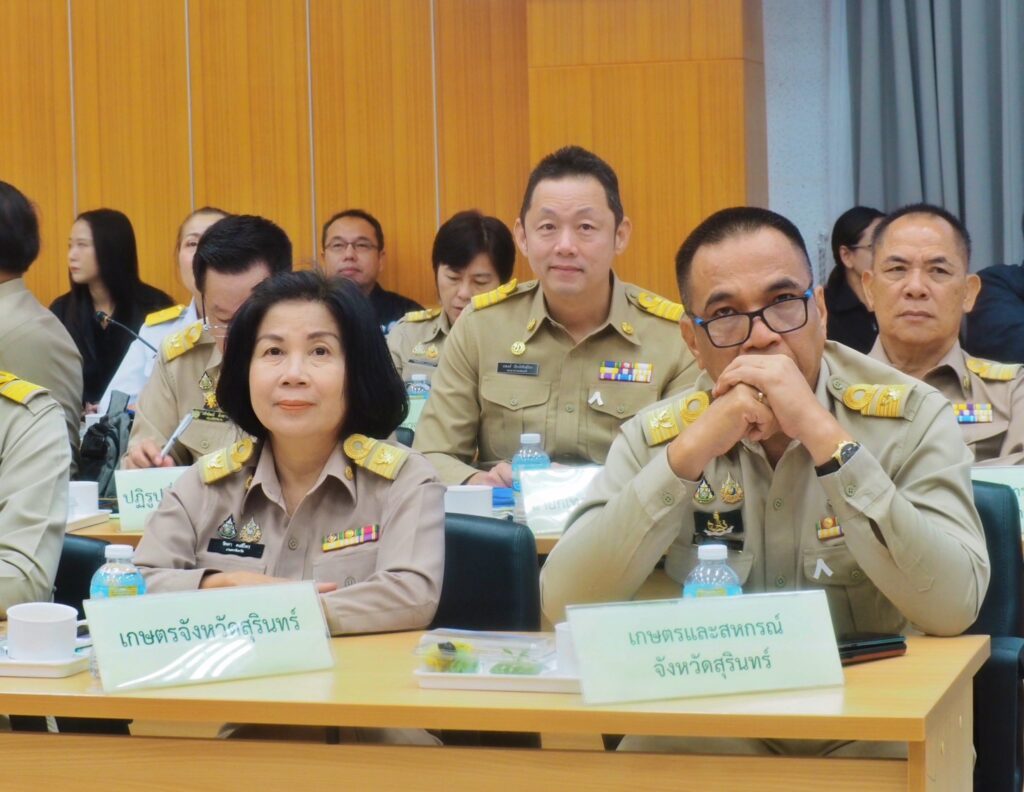 วันที่ 25 พฤศจิกายน 2568 นางรัตดา คงสีไพร เกษตรจังหวัดสุรินทร์ ร่วมการประชุมคณะกรมการจังหวัดสุรินทร์ ครั้งที่ 11/2568 ณ ห้องประชุมช้างใหญ่ ศูนย์ราชการจังหวัดสุรินทร์ โดยมีนายจำเริญ แหวนเพ็ชร รองผู้ว่าราชการจังหวัด รักษาราชการแทนผู้ว่าราชการจังหวัดสุรินทร์ เป็นประธานการประชุม พร้อมด้วยรองผู้ว่าราชการจังหวัดสุรินทร์ หัวหน้าส่วนราชการ หัวหน้าหน่วยงานรัฐวิสาหกิจ นายอำเภอทุกอำเภอ และคณะกรมการจังหวัดเข้าร่วมการประชุม เพื่อชี้แจงข้อราชการสำคัญของส่วนราชการและหน่วยงานต่างๆ เพื่อให้กรมการจังหวัดรับทราบ เพื่อขับเคลื่อนงานที่เป็นนโยบายของรัฐบาล กระทรวง กรม และหน่วยงานราชการต่าง ๆ ที่จะลงมาสู่จังหวัดให้เกิดผลเป็นรูปธรรมแก่ประชาชน ในบริบทของจังหวัดสุรินทร์จนประสบผลสำเร็จ