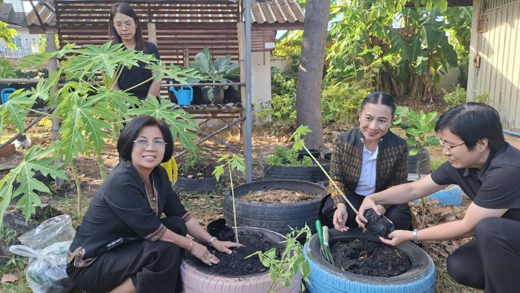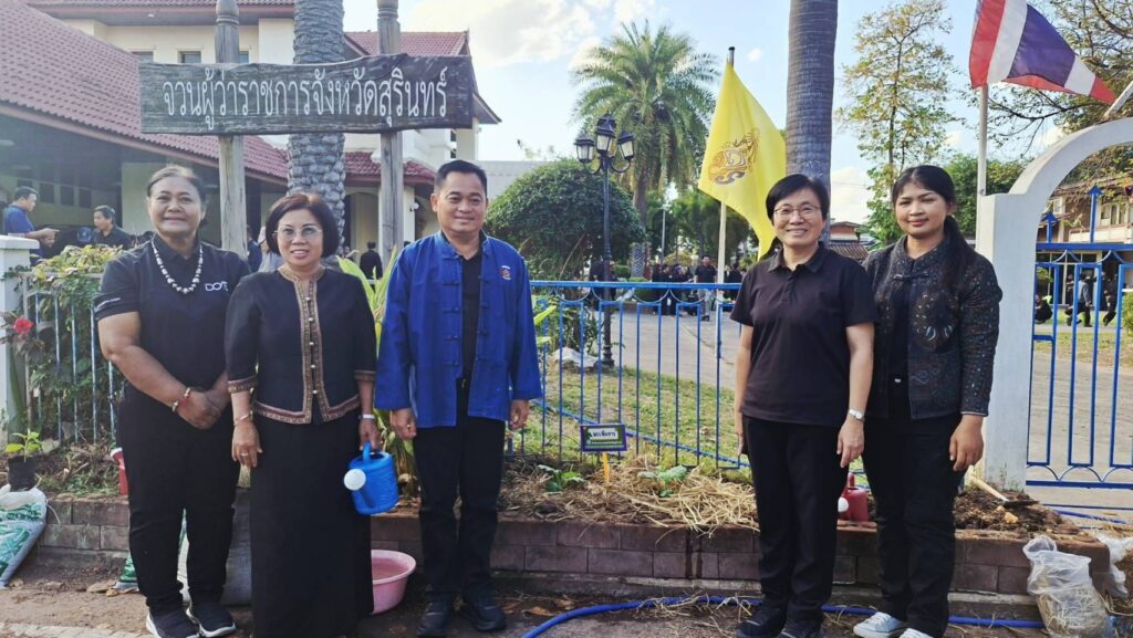 วันที่ 24 ธันวาคม 2568 นางรัตดา คงสีไพร เกษตรจังหวัดสุรินทร์ พร้อมด้วยนางผ่องใส คงเกตุ หัวหน้ากลุ่มส่งเสริมและพัฒนาเกษตรกร นางสาวสร้อยเพชร ตันติรัตนานนท์ หัวหน้ากลุ่มยุทธศาสตร์และสารสนเทศ เจ้าหน้าที่กลุ่มส่งเสริมและพัฒนาเกษตรกร สำนักงานเกษตรจังหวัดสุรินทร์ ร่วมกิจกรรมเอามื้อสามัคคี นุ่งผ้าไทย ไปปลูกผัก สร้างความมั่นคงทางอาหาร เพื่อเป็นการขับเคลื่อนกิจกรรมเพื่อคุณภาพชีวิตที่ดีและมีความมั่นคงทางอาหาร (GOOD & FOOD SECURITY) ตามแนวพระราชดำริของสมเด็จพระกนิษฐาธิราชเจ้า กรมสมเด็จพระเทพรัตนราชสุดาฯ สยามบรมราชกุมารี สู่ปฏิบัติการปลูกผักสวนครัว เพื่อสร้างความมั่นคงทางอาหาร ซึ่งเป็นการดำเนินกิจกรรม KICK OFF “ผู้นำทำก่อน” ให้เป็นแบบอย่างให้กับประชาชน โดยมี นายจำเริญ แหวนเพ็ชร ผู้ว่าราชการจังหวัดสุรินทร์ เป็นประธานในกิจกรรมฯ ณ บริเวณจวนผู้ว่าราชการจังหวัดสุรินทร์ ตำบลในเมือง อำเภอเมือง จังหวัดสุรินทร์