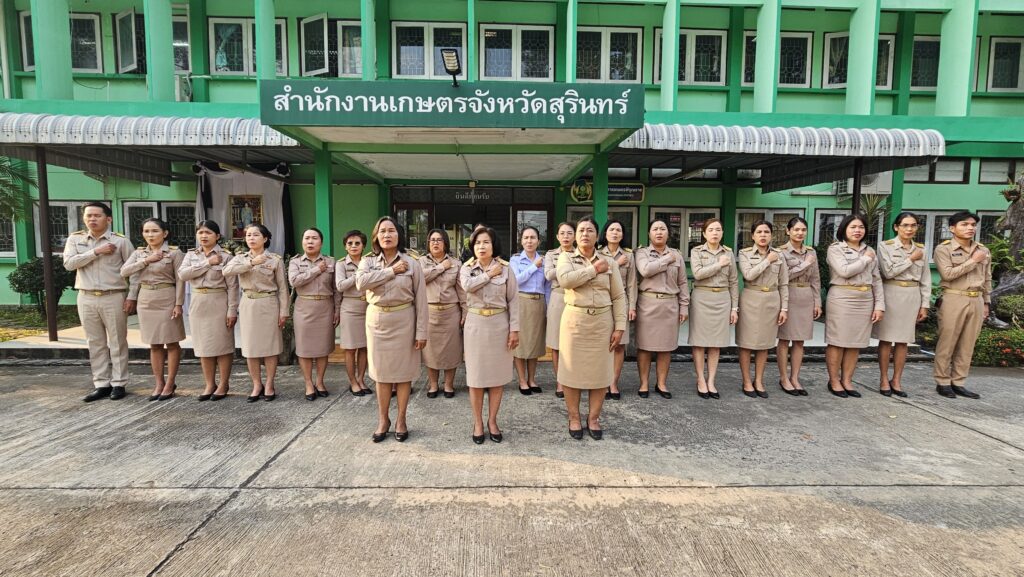 วันที่ 19 มกราคม 2569 นางรัตดา คงสีไพร เกษตรจังหวัดสุรินทร์ พร้อมด้วยนางผ่องใส คงเกตุ หัวหน้ากลุ่มส่งเสริมและพัฒนาเกษตรกร นางฤทัยวรรณ เลาเลิศ หัวหน้ากลุ่มส่งเสริมและพัฒนาการผลิต และเจ้าหน้าที่สำนักงานเกษตรจังหวัดสุรินทร์ ร่วมกิจกรรม “DOAE โปรงใส่ หัวใจคุณธรรม ไม่ทนต่อการทุจริต” ร่วมประกาศเจตนารมณ์ต่อต้านการทุจริต และปฏิญานตนในการปฏิบัติหน้าที่ด้วยความซื่อสัตย์สุจริต ไม่เพิกเฉย และไม่ทนต่อการทุจริต ณ บริเวณหน้าเสาธง สำนักงานเกษตรจังหวัดสุรินทร์
