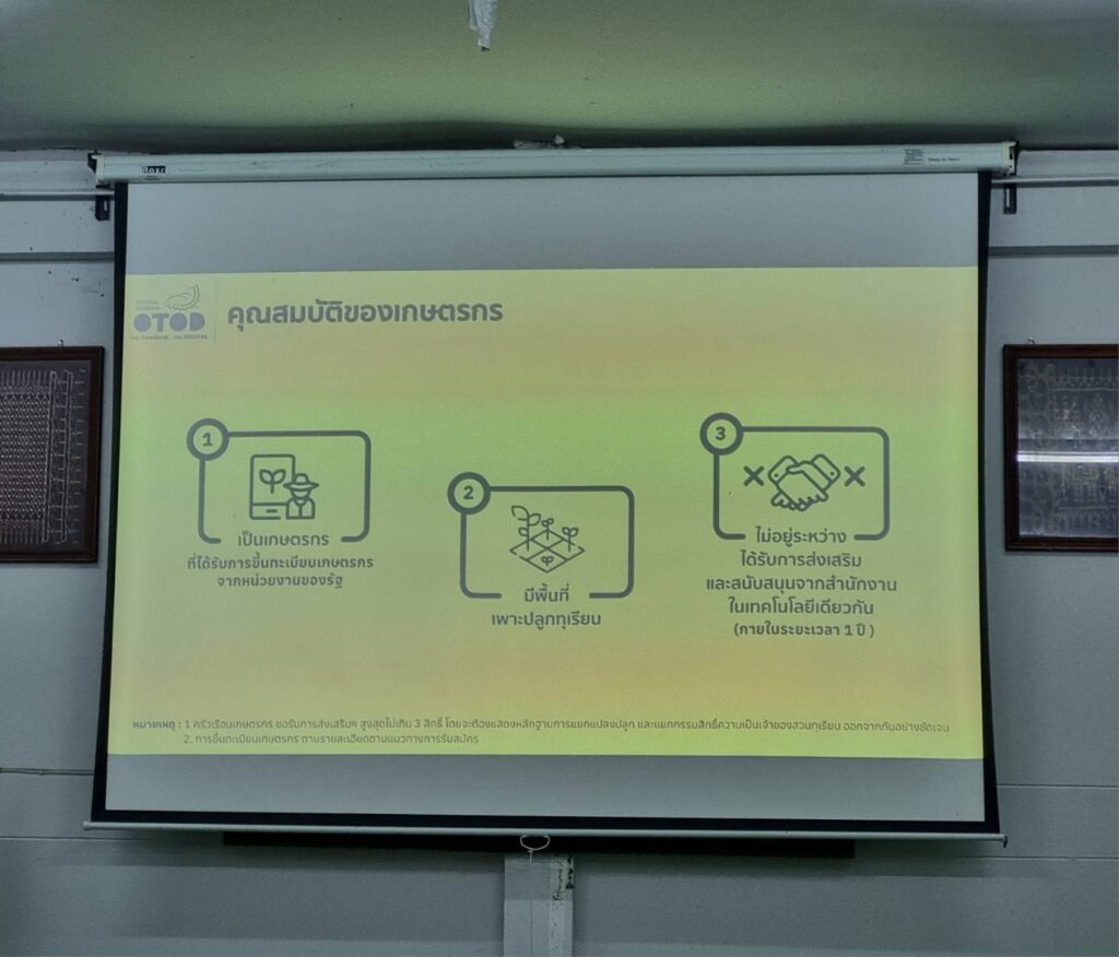 โครงการนี้มุ่งหวังให้เกษตรกรชาวสวนทุเรียนสามารถเข้าถึงและใช้ประโยชน์จากเทคโนโลยีดิจิทัล เพื่อเพิ่มประสิทธิภาพการผลิต ลดต้นทุน และสร้างมาตรฐานผลผลิตสู่สากล โดยมุ่งเน้นการประยุกต์ใช้เทคโนโลยีในการบริหารจัดการสวนทุเรียนตั้งแต่การวางแผนการเพาะปลูก การดูแลรักษา การจัดการน้ำ การตรวจสอบคุณภาพผลผลิต ไปจนถึงการติดตามย้อนกลับแหล่งที่มา (Traceability) ผ่านแอปพลิเคชันเพื่อจดบันทึกการเพาะปลูก เพื่อสร้างความเชื่อมั่นให้แก่ผู้บริโภค นอกจากนี้ เกษตรกรผู้เข้าร่วมโครงการจะได้รับระบบบริหารจัดการน้ำอัจฉริยะด้วยเทคโนโลยี IoT เพื่อให้ชาวสวนทุเรียนสามารถจัดสรรน้ำในสวนได้อย่างแม่นยำ ประหยัดต้นทุน เพิ่มประสิทธิภาพการผลิต โดยสั่งการผ่านโทรศัพท์มือถือ นอกจากนี้ เกษตรกรยังสามารถตรวจวัดอุณหภูมิ ความชื้นในอากาศและในดินได้แบบเรียลไทม์