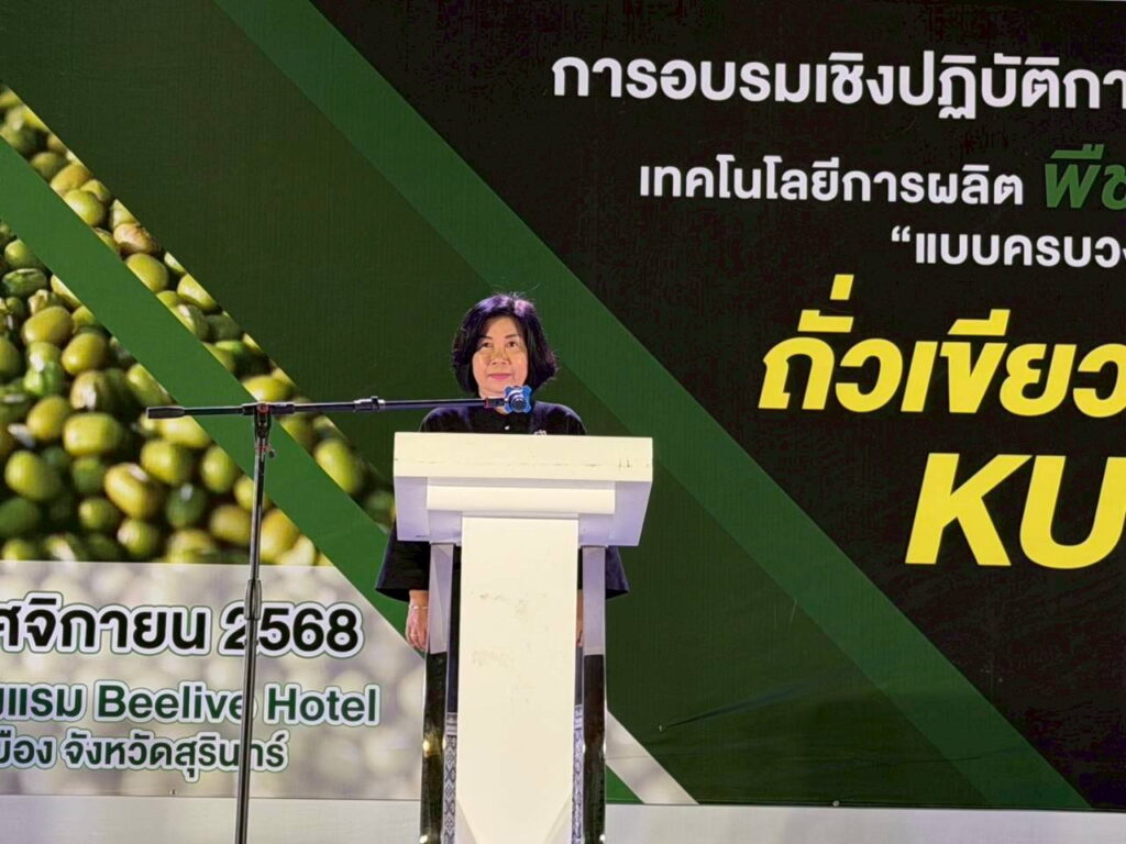 เกษตรสุรินทร์ เป็นประธานเปิดการอบรมเชิงปฏิบัติการหลักสูตร “เทคโนโลยีการผลิตพืชหลังนาแบบครบวงจร : ถั่วเขียวพันธุ์ KUML”