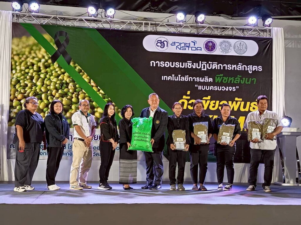 ภายในงานได้มีการมอบปัจจัยการผลิตให้กับเกษตกร โดย สวทช. สนับสนุนเมล็ดพันธุ์ถั่วเขียว KUML เบอร์ 4 และปุ๋ยชีวภาพไรโซเบียม ให้กับเกษตรกรที่เข้าร่วมโครงการเพื่อใช้ในการปลูกหลังฤดูทำนาปีนี้อีกด้วย