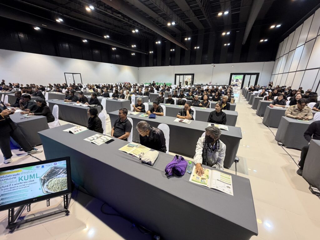 วันที่ 3 พฤศจิกายน 2568 นางรัตดา คงสีไพร เกษตรจังหวัดสุรินทร์ เป็นประธานเปิดการอบรมเชิงปฏิบัติการหลักสูตร “เทคโนโลยีการผลิตพืชหลังนาแบบครบวงจร : ถั่วเขียวพันธุ์ KUML” ณ ห้องประชุม Hall 1 โรงแรม Beelieve Hotel ตำบลนอกเมือง อำเภอเมืองสุรินทร์ จังหวัดสุรินทร์ โดยสำนักงานเกษตรจังหวัดสุรินทร์ ร่วมกับสำนักงานพัฒนาวิทยาศาสตร์และเทคโยโลยีแห่งชาติ (สวทช.) และมหาวิทยาลัยเกษตรศาสตร์ ดำเนินการอบรมเชิงปฏิบัติการหลักสูตร “เทคโนโลยีการผลิตพืชหลังนาแบบครบวงจร : ถั่วเขียวพันธุ์ KUML” ให้แก่เกษตรอำเภอ เจ้าหน้าส่งเสริมการเกษตรประจำตำบลและเกษตรกร จำนวน 300 ราย เพื่อถ่ายทอดองค์ความรู้ เทคโนโลยี และนวัตกรรม สร้างบุคลากรที่มีความรู้ความเข้าใจในการปลูกถั่วเขียว KUML อย่างถูกต้องตามหลักวิชาการ รวมถึงยกระดับเกษตรกรให้สามารถนำองค์ความรู้ไปใช้ประโยชน์จริง สร้างรายได้เสริม อีกทั้งยังช่วยลดปัญหาการเผาฟางข้าวและเศษวัสดุทางการเกษตร ซึ่งส่งผลดีต่อการลดการปล่อยก๊าซเรือนกระจกและการแก้ปัญหาภาวะโลกร้อน