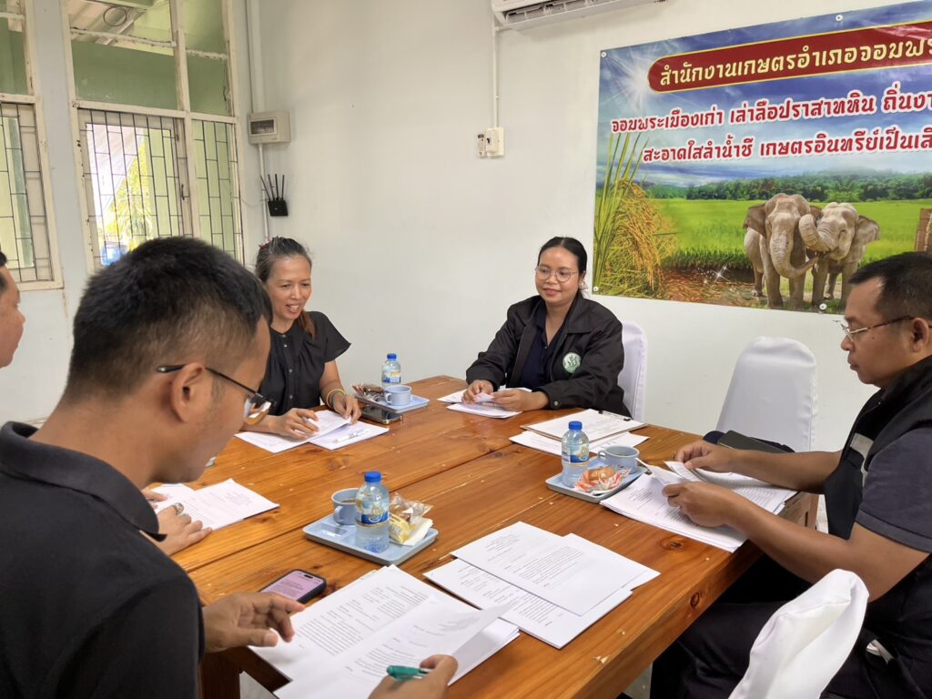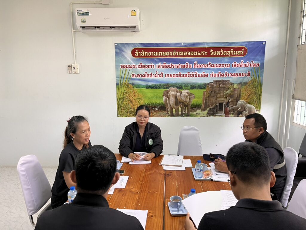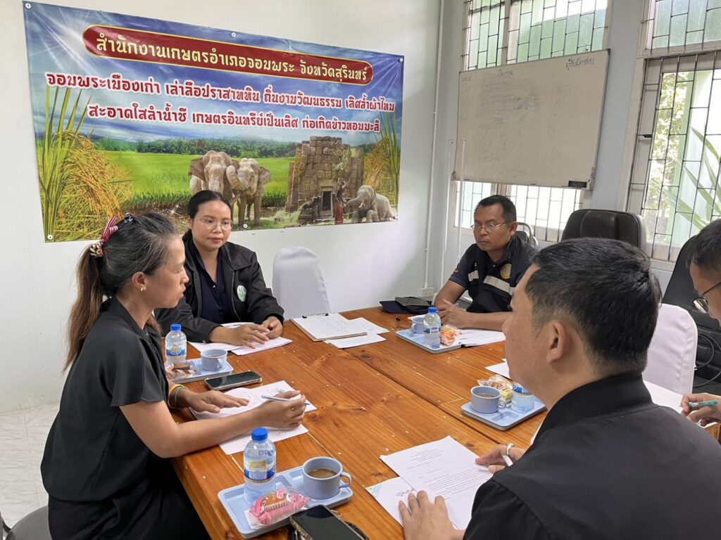วันที่ 6 พฤศจิกายน 2568 นางสาวนันทา เพราะทอง เกษตรอำเภอจอมพระ เป็นประธานในการประชุมคณะทำงานขับเคลื่อนงานด้านการเกษตรระดับอำเภอ (SCD) อำเภอจอมพระ ครั้งที่ 3/2568 เพื่อติดตามความก้าวหน้าการดำเนินงานตามนโยบายด้านการเกษตรของจังหวัดสุรินทร์/นโยบายกระทรวงเกษตรและสหกรณ์ และการจัดเก็บข้อมูลด้านการเกษตรในระดับพื้นที่ พร้อมทั้งพิจารณาเรื่องการจัดทำปฏิทินผลผลิตสินค้าเกษตรรายเดือนระดับจังหวัด เพื่อการบริหารจัดการด้านความมั่นคงอาหารและโภชนาการ ปี 2568 อำเภอจอมพระ จังหวัดสุรินทร์ โดยมีหน่วยงานในสังกัดกระทรวงเกษตรและสหกรณ์ ประกอบด้วย ปศุสัตว์อำเภอ ผู้แทนสำนักงานประมงจังหวัดสุรินทร์ ผู้แทนสำนักงานเกษตรและสหกรณ์จังหวัดสุรินทร์ เข้าร่วมประชุม ณ ห้องประชุมสำนักงานเกษตรอำเภอจอมพระ จังหวัดสุรินทร์
