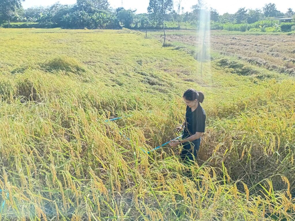 วันที่ 13 พฤศจิกายน 2568 นางสาวนันทา เพราะทอง เกษตรอำเภอจอมพระ มอบหมายให้นางสาวสุทธาสินี ปิ่นทอง นักวิชาการส่งเสริมการเกษตรปฏิบัติการ ลงพื้นที่สุ่มวัดผลผลิตข้าวหอมมะลิ ปีการผลิต 2568/69 เพื่อให้ทราบถึงสถานการณ์เก็บเกี่ยวและคาดการณ์ปริมาณผลผลิตข้าวที่จะออกสู่ตลาด ณ แปลงนานายธาตุ สมสวย หมู่ที่ 4 ตำบลชุมแสง อำเภอจอมพระ จังหวัดสุรินทร์
