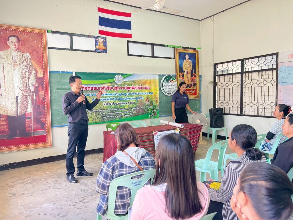 จัดกิจกรรมเวทีเรียนรู้การปลูกพืชใช้นานน้อยโครงการยกระดับสินค้าเกษตรและบริการมูลค่าสูง (ข้าว) โดยจัดเป็นฐานการเรียนรู้ จำนวน 3 ฐาน คือ ฐานการทำเกษตรให้เท่าทันต่อการเปลี่ยนแปลงของสภาพภูมิอากาศ,ฐานการปลูกพืชใช้น้ำน้อย (ถั่วลิสงคุณภาพดี)และการขอรับรองมาตรฐาน GAP และฐานการจัดการศัตรูพืชแบบผสมผสาน (IPM) โดยมีเกษตรกรเป้าหมายจำนวน 30 ราย พร้อมมอบปัจจัยการผลิต ปุ๋ยเคมีจำนวน 15 กระสอบ,ยิปซั่มจำนวน 50 กระสอบ และสารชีวภัณฑ์เพื่อใช้ในแปลงพืชน้ำน้อย