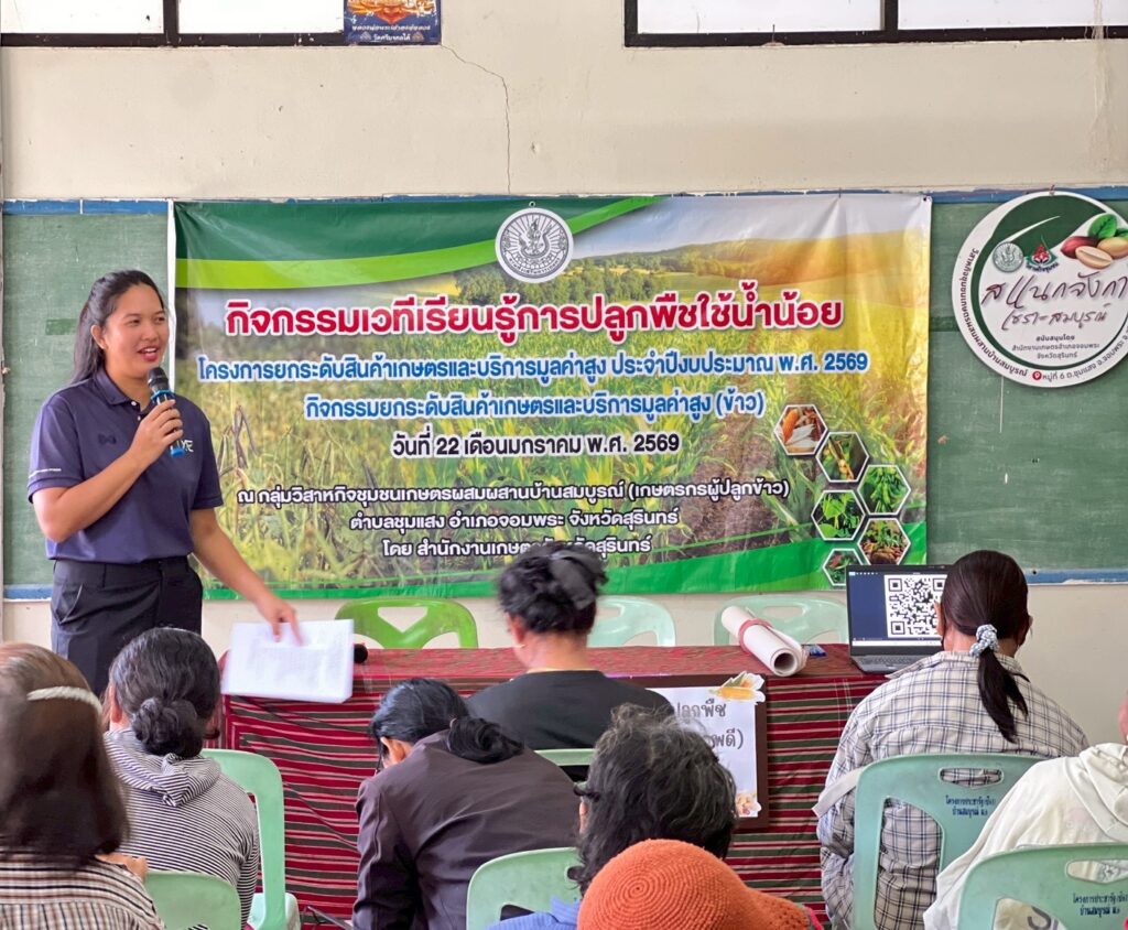 ซึ่งการจัดเวทีเรียนรู้ในครั้งนี้ เป็นการบรูณะการร่วมกับศูนย์วิจัยและพัฒนาการเกษตรจังหวัดสุรินทร์ กลุ่มส่งเสริมและพัฒนาการผลิตและกลุ่มอารักขาพืช สำนักงานเกษตรจังหวัดสุรินทร์ เพื่อเผยแพร่องค์ความรู้ หลักการปฏิบัติ และสร้างแบบแผนการดำเนินงานในภาคการเกษตรให้แก่เกษตรกรที่เข้าอบรมได้นำความรู้ไปปรับใช้ในแปลงของตนเอง เพื่อเพิ่มผลผลิตสูงสุดและเป็นมิตรต่อสิ่งแวดล้อม