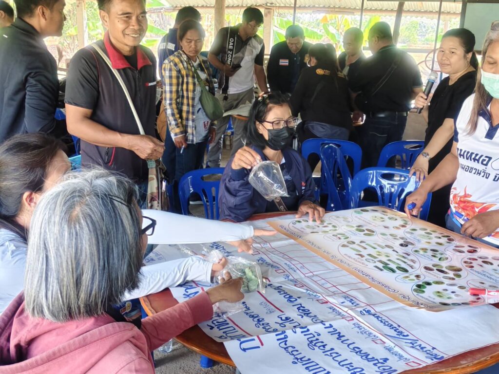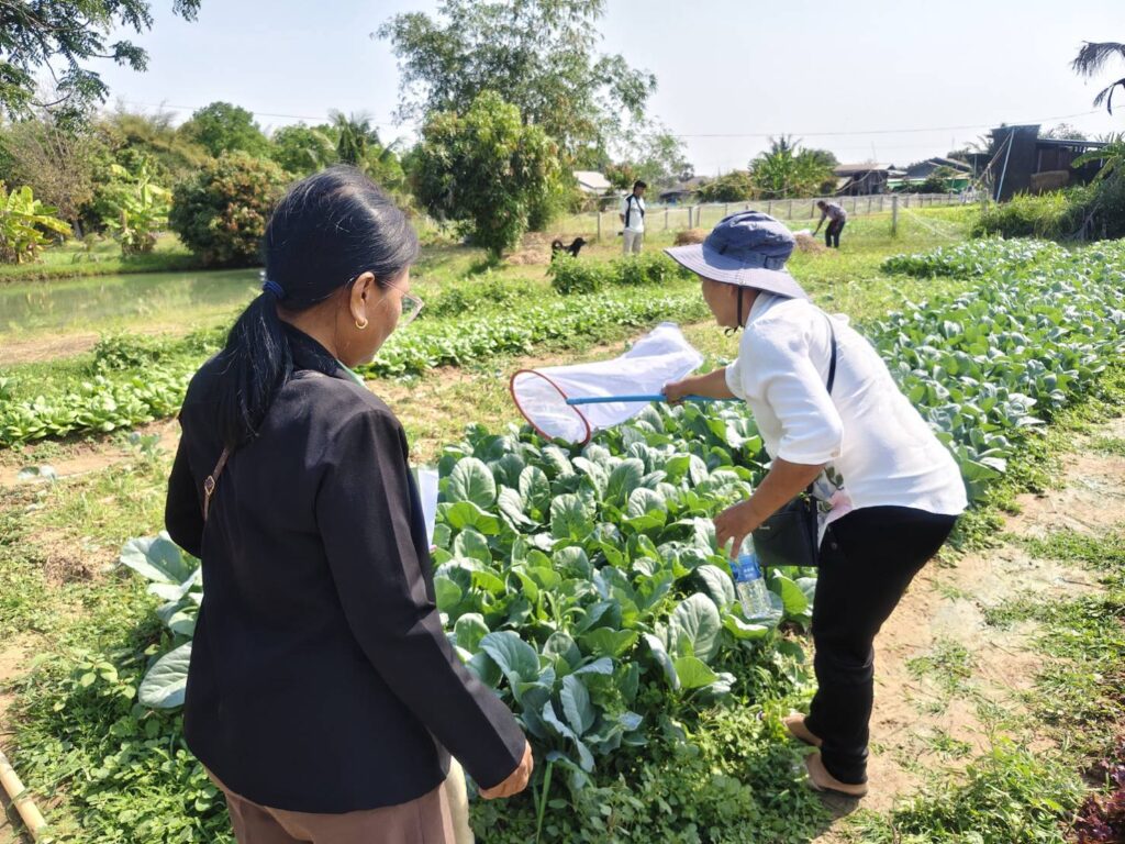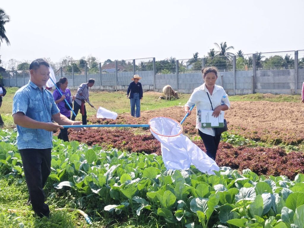 นอกจากนี้ ผู้เข้าร่วมอบรมยังได้ฝึกปฏิบัติจริงในแปลงเรียนรู้ ทดลองใช้แบบฟอร์มสำรวจและเครื่องมือที่เกี่ยวข้อง พร้อมแลกเปลี่ยนประสบการณ์ระหว่างเกษตรกรและเจ้าหน้าที่ผู้เชี่ยวชาญ สร้างเครือข่ายเกษตรกรเฝ้าระวังศัตรูพืชในระดับชุมชน