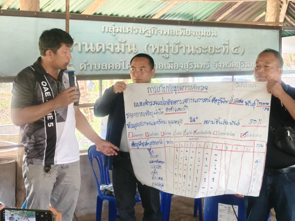 อำเภอจอมพระ จังหวัดสุรินทร์ เดินหน้าพัฒนาศักยภาพเกษตรกรในพื้นที่ โดยส่งตัวแทนเกษตรกร เข้าร่วมการอบรม “เกษตรกรผู้สำรวจแปลงติดตามสถานการณ์ศัตรูพืช” เพื่อเพิ่มพูนทักษะ ความรู้ และความสามารถในการสำรวจแปลงเพาะปลูก ติดตามสถานการณ์การระบาดของศัตรูพืชให้มีความถูกต้อง แม่นยำ และทันต่อสถานการณ์ ณ ศูนย์เรียนรู้เศรษฐกิจพอเพียงบ้านดงมัน ตำบลคอโค อำเภอเมืองสุรินทร์ จังหวัดสุรินทร์