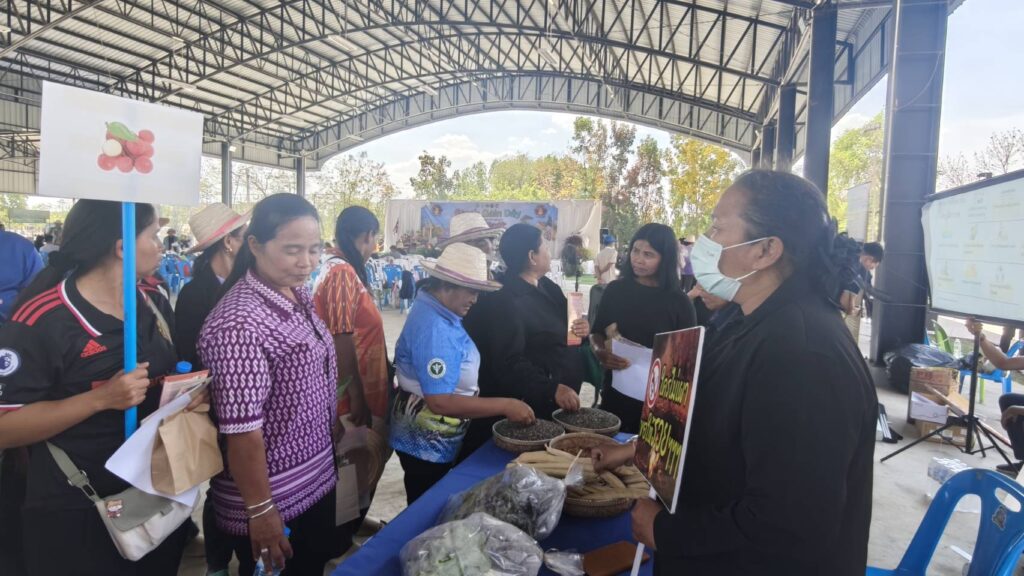 นางรจนา ศรีวันทา ตัวแทนจาก ชุมชนบ้านโนนงิ้ว ตำบลหนองสนิท อำเภอจอมพระจังหวัดสุรินทร์ ร่วมเวทีเสวนา และให้ความรู้/สร้างจิตสำนึก ในฐานเรียนรู้ “ชุมชนต้นแบบในการบริหารจัดการพื้นที่และแก้ไขปัญหาการเผาในพื้นที่เกษตร” ในกิจกรรมรณรงค์และสร้างการรับรู้ “ไม่เผาแต่ได้รายได้” แก่เกษตรกรตำบลตรึม อำเภอศีขรภูมิ จังหวัดสุรินทร์ 250 คน
