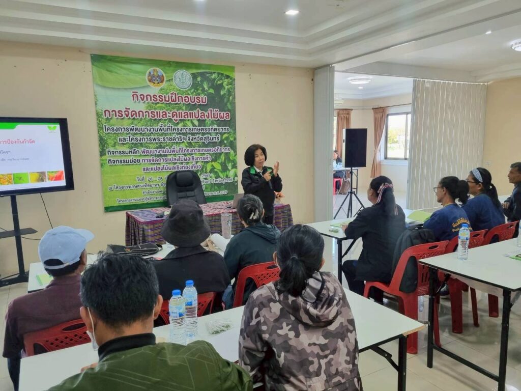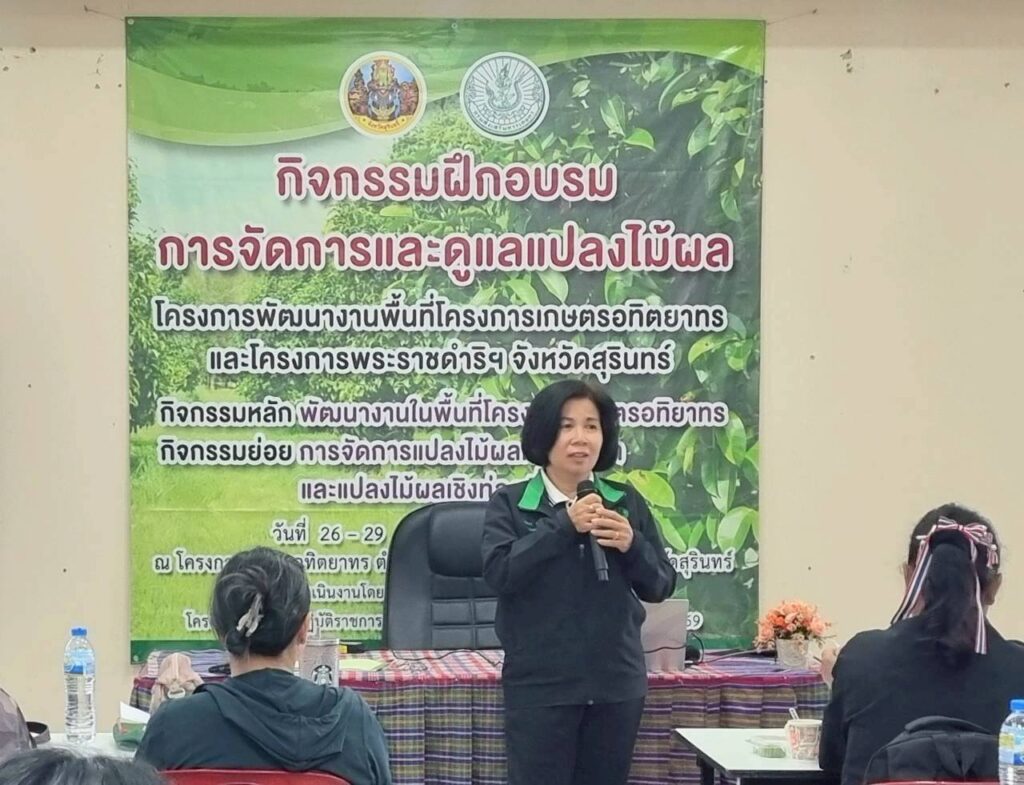 วันที่ 28 มกราคม 2569 นางจริยา ดีเสมอ เกษตรอำเภอกาบเชิง พร้อมด้วยนายณัฏชยพล ดาวศรี นักวิชาการส่งเสริมการเกษตรชำนาญการ นำเกษตรกรผู้สนใจปลูกไม้ผลในพื้นที่อำเภอกาบเชิงเข้าร่วมอบรมโครงการพัฒนางานพื้นที่โครงการเกษตรอทิตยาทร และโครงการพระราชดำริฯ จังหวัดสุรินทร์ กิจกรรมการจัดการแปลงไม้ผลเชิงการค้าและแปลงไม้ผลเชิงท่องเที่ยว เพื่อเสริมสร้างความรู้ในการดูแลไม้ผล เพื่อพัฒนาเป็นแปลงไม้ผลเขิงการค้าและท่องเที่ยว ณ โครงการเกษตรอทิตยาทร จังหวัดสุรินทร์ ตำบลเทนมีย์ อำเภอเมืองสุรินทร์ จังหวัดสุรินทร์