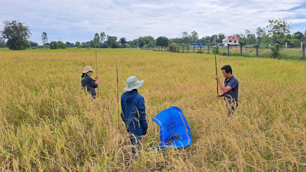 วันที่ 27 ตุลาคม 2568 – นางปิญพร บุญเยี่ยม เกษตรอำเภอเขวาสินรินทร์ พร้อมด้วยเจ้าหน้าที่สำนักงานเกษตรอำเภอฯ ลงพื้นที่สุ่มวัดผลผลิตข้าวหอมมะลิ ปีการผลิต 2568/69 ในพื้นที่หมู่ที่ 2 ตำบลเขวาสินรินทร์ และหมู่ที่ 9 ตำบลบึง อำเภอเขวาสินรินทร์ จังหวัดสุรินทร์ เพื่อเก็บข้อมูลผลผลิตข้าวในแปลงของเกษตรกรอย่างเป็นระบบ โดยใช้วิธีการสุ่มแปลงนาและเก็บเกี่ยวตัวอย่างข้าวในพื้นที่ที่กำหนด เพื่อประเมินปริมาณผลผลิตเฉลี่ยต่อไร่ และวิเคราะห์คุณภาพข้าวในฤดูกาลผลิตปัจจุบัน