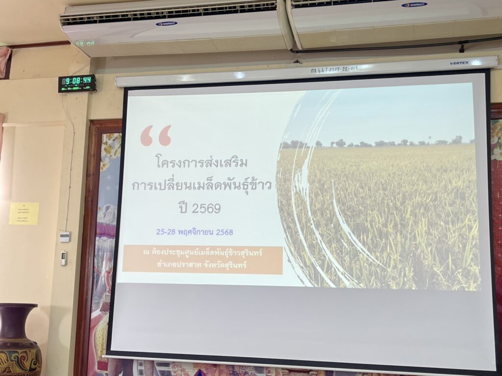 วันที่ 26 พฤศจิกายน 2568 – นางปิญพร บุญเยี่ยม เกษตรอำเภอเขวาสินรินทร์ เข้าร่วมประชุมชี้แจงโครงการและแนวทางการดำเนินงาน “โครงการส่งเสริมการเปลี่ยนเมล็ดพันธุ์ข้าว ปี 2569” ภายใต้กิจกรรมส่งเสริมและแลกเปลี่ยนเมล็ดพันธุ์ข้าว โดยมีวัตถุประสงค์เพื่อส่งเสริมให้ชาวนาใช้เมล็ดพันธุ์ข้าวคุณภาพดีในการเพาะปลูก เพิ่มประสิทธิภาพการผลิต และยกระดับความสามารถในการแข่งขันของข้าวไทยในตลาดโลก โครงการนี้ครอบคลุมพื้นที่ 17 อำเภอในจังหวัดสุรินทร์ ตั้งเป้าหมายเมล็ดพันธุ์ข้าวคุณภาพดีจำนวน 1,840,000 กิโลกรัม สำหรับแจกจ่ายให้เกษตรกรที่เข้าร่วม โดยมีเงื่อนไขดังนี้