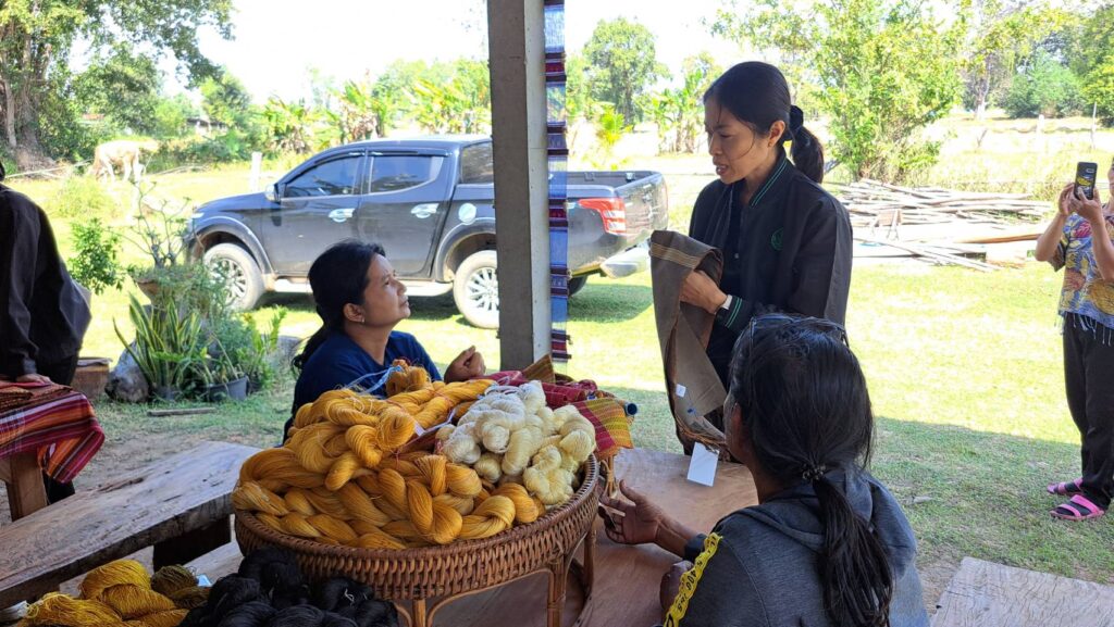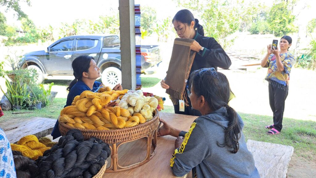 วันที่ 25 พฤศจิกายน 2568 – นางปิญพร บุญเยี่ยม เกษตรอำเภอเขวาสินรินทร์ พร้อมด้วยเจ้าหน้าที่สำนักงานเกษตรอำเภอฯ ได้ลงพื้นที่เยี่ยมเยียนและให้กำลังใจ “วิสาหกิจชุมชนภูมิปัญญาผ้าทอมือ” ณ หมู่ที่ 10 ตำบลบ้านแร่ อำเภอเขวาสินรินทร์ จังหวัดสุรินทร์ โดยทางกลุ่มถือเป็นแหล่งผลิตผ้าไหมคุณภาพดีของอำเภอ มีฝีมือการทอที่ประณีตบรรจง มีผลิตภัณฑ์หลากหลายประเภท อาทิ ผ้าไหมมัดหมี่, ผ้ายกดอกราชวัตร, ผ้ามัดหมี่ทอลายยกดอกลูกแก้ว, ผ้าคลุมไหล่สีธรรมชาติ, ผ้าไหมโฮล, ผ้าไหมอัมปรม และโสร่งไหม ซึ่งล้วนเป็นสินค้าที่สร้างชื่อเสียงและรายได้ให้กับสมาชิกได้เป็นอย่างดี ทางสำนักงานเกษตรอำเภอฯ พร้อมสนับสนุนและส่งเสริมให้กลุ่มมีการบริหารจัดการที่ดี เพื่อยกระดับสินค้าของอำเภอเขวาสินรินทร์ให้เป็นที่รู้จักในวงกว้างต่อไป