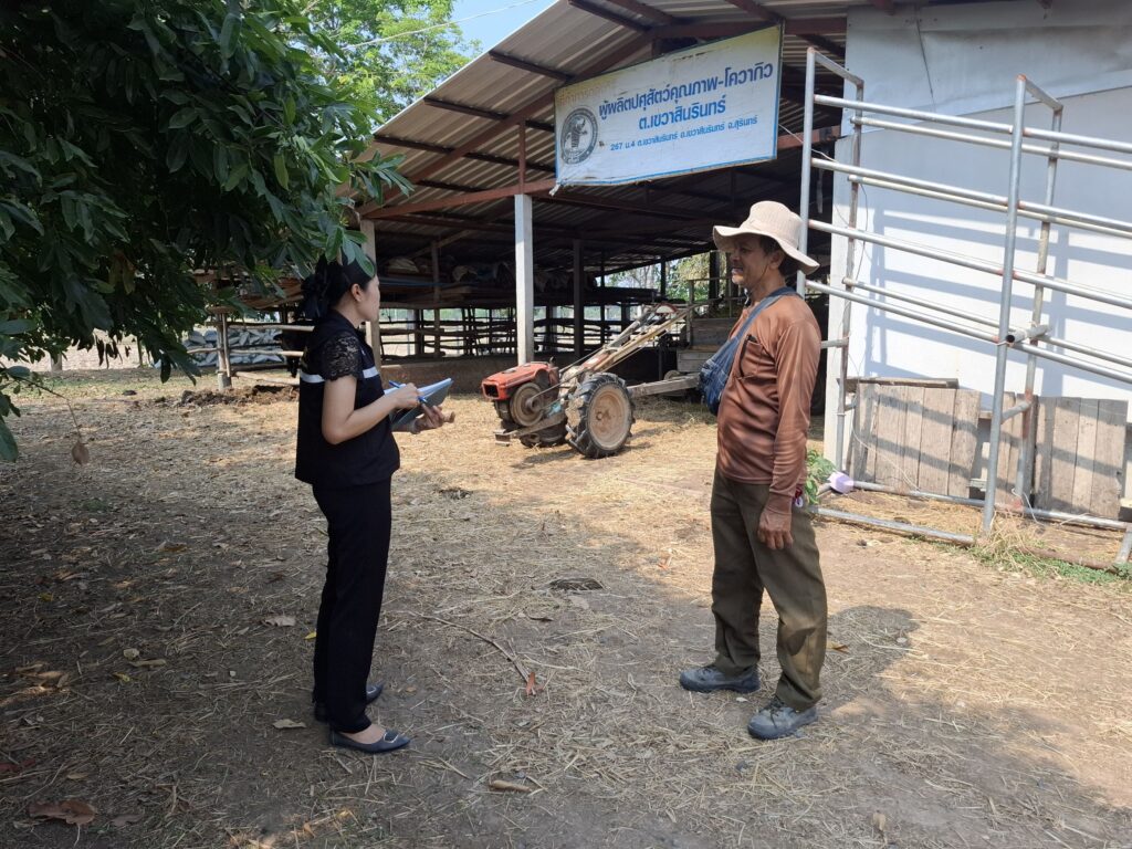 นที่ 24 มีนาคม 2569 – นางปิญพร บุญเยี่ยม เกษตรอำเภอเขวาสินรินทร์ พร้อมด้วยเจ้าหน้าที่สำนักงานเกษตรอำเภอ ลงพื้นที่เยี่ยมเยียนและติดตามผลการดำเนินงานของ กลุ่มวิสาหกิจชุมชนผู้ผลิตปศุสัตว์คุณภาพ-โควากิว ตำบลเขวาสินรินทร์ ณ บ้านโชคหัวแรต หมู่ที่ 4 ตำบลเขวาสินรินทร์ อำเภอเขวาสินรินทร์ จังหวัดสุรินทร์