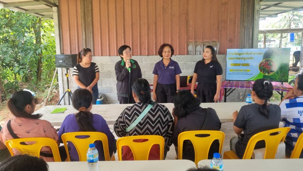 วันที่ 10 พฤศจิกายน 2568 เวลา 08.30 น. นายศิริบูรณ์ ดวงแว่ว เกษตรอำเภอลำดวน พร้อมด้วยเจ้าหน้าที่สำนักงานเกษตรอำเภอลำดวน ทีมเจ้าหน้าที่จากกองวิจัยและพัฒนางานส่งเสริมการเกษตร นำโดย นางสาวปิยนันท์ บุญสร้าง นักวิชาการส่งเสริมการเกษตรชำนาญการพิเศษ และทีมเจ้าหน้าที่จากสำนักงานเกษตรจังหวัดสุรินทร์ นำโดยนางสาวสร้อยเพชร ตันติรัตนานนท์ หัวหน้ากลุ่มยุทธศาสตร์และสารสนเทศ ร่วมจัดการอบรมเชิงปฏิบัติการ “การแปรรูปพริกเพื่อเพิ่มมูลค่า” โครงการส่งเสริมเทคโนโลยีการเพิ่มมูลค่าสินค้าเกษตรในศูนย์เรียนรู้การเพิ่มประสิทธิภาพการผลิตสินค้าเกษตร (ศพก.) ตามความร่วมมือ Asian Food and Agriculture Cooperation Initiative (AFACI) กับกรมส่งเสริมการเกษตร ภายใต้โครงการ Improvement of Rural Agriculture Technology Extension System in Asia (RATES) โดยจัดกิจกรรมอบรมขยายผลแก่เกษตรกรผู้ปลูกพริกในตำบลตระเปียงเตีย จำนวน 4 หมู่บ้าน เกษตรกร จำนวน 30 ราย ณ ศูนย์เรียนรู้การเพิ่มประสิทธิภาพการผลิตสินค้าเกษตร (ศพก.) เครือข่าย นางสาวสาธิดา ปะรัมย์ บ้านหนองเกาะ หมู่ที่ 2 ตำบลตระเปียงเตีย อำเภอลำดวน จังหวัดสุรินทร์