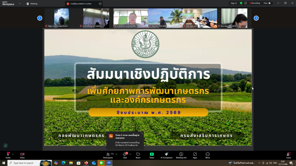 วันที่ 12 พฤศจิกายน 2568 เวลา 09.00 น. นายศิริบูรณ์ ดวงแว่ว เกษตรอำเภอลำดวน มอบหมายให้นายพินิจ มังกร นักวิชาการส่งเสริมการเกษตรชำนาญการ เข้าร่วมสัมมนาเชิงปฏิบัติการเพิ่มศักยภาพการพัฒนาเกษตรกรและองค์กรเกษตรกร ผ่านระบบออนไลน์ (Zoom Meeting) จากห้องประชุมศูนย์ปฏิบัติการ (OR) ชั้น 2 อาคาร 1 กรมส่งเสริมการเกษตร เพื่อสร้างความเข้าใจแก่เจ้าหน้าที่ในการดำเนินงานพัฒนาเกษตรกร และองค์กรเกษตรกรของกรมส่งเสริมการเกษตร ประจำปีงบประมาณ พ.ศ. 2569 ตลอดจนการนำนโยบายไปประยุกต์ใช้ในการปฏิบัติงานในพื้นที่ได้อย่างเหมาะสม และเป็นเวทีเพื่อแลกเปลี่ยนเรียนรู้ เชื่อมโยงเครือข่ายเจ้าหน้าที่ส่งเสริมการเกษตรด้านการพัฒนาเกษตรกรและองค์กรเกษตรกร ณ สำนักงานเกษตรอำเภอลำดวน จังหวัดสุรินทร์