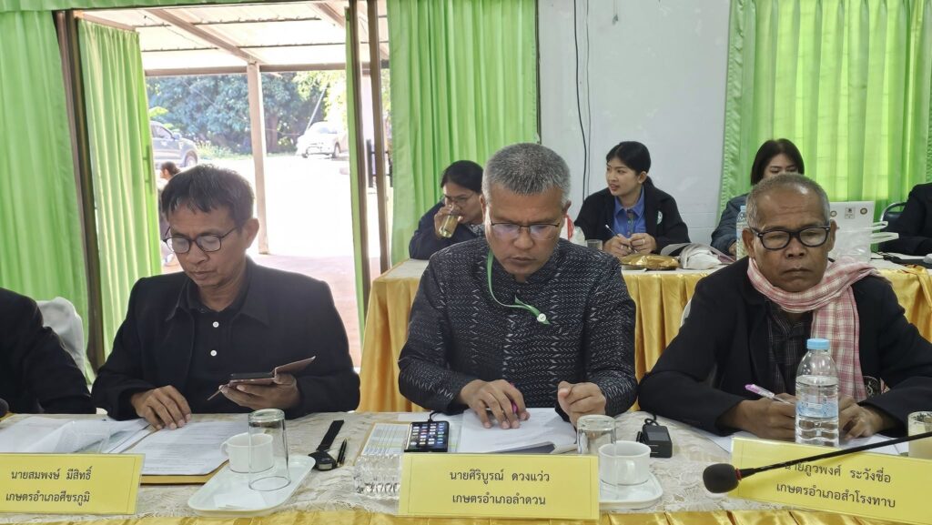 วันที่ 28 พฤศจิกายน 2568 เวลา 09.00 น. นายศิริบูรณ์ ดวงแว่ว เกษตรอำเภอลำดวน เข้าร่วมการประชุมเกษตรอำเภอ ครั้งที่ 11/2568 ประจำเดือนพฤศจิกายน 2568 เพื่อรับทราบข้อราชการต่างๆ จากจังหวัดสุรินทร์และสำนักงานเกษตรจังหวัดสุรินทร์ โดยมีนางสาวสร้อยเพชร ตันติรัตนานนท์ หัวหน้ากลุ่มยุทธศาสตร์และสารสนเทศ แทนเกษตรจังหวัดสุรินทร์ เป็นประธานในการประชุม ณ ห้องประชุมหอมมะลิ สำนักงานเกษตรจังหวัดสุรินทร์ ตำบลคอโค อำเภอเมืองสุรินทร์ จังหวัดสุรินทร์