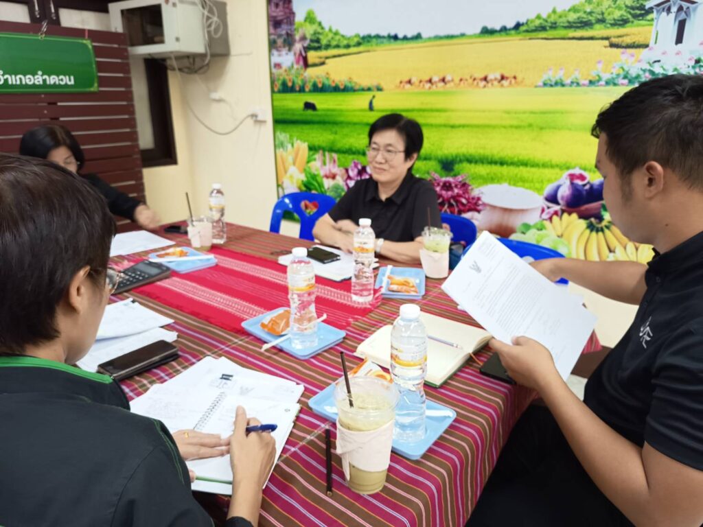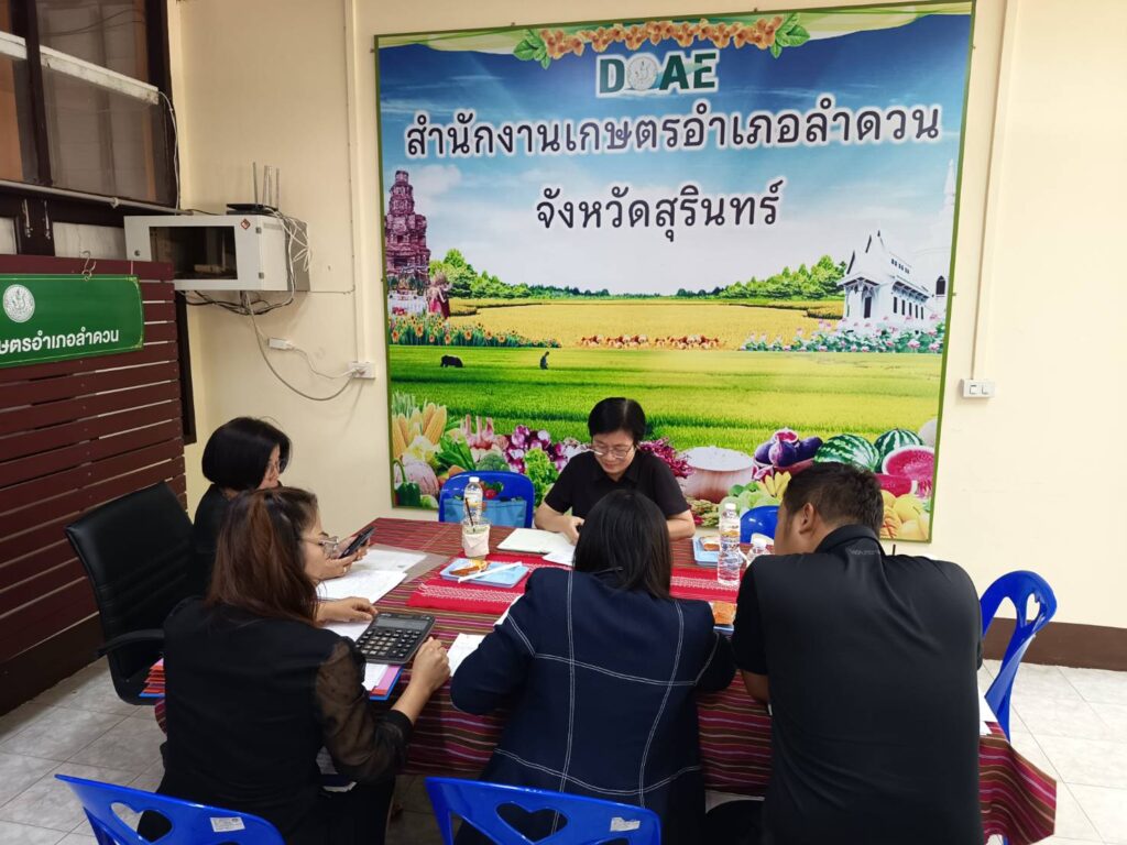 วันที่ 24 ธันวาคม 2568 เวลา 13.30 น. นายศิริบูรณ์ ดวงแว่ว เกษตรอำเภอลำดวน มอบหมายให้เจ้าหน้าที่สำนักงานเกษตรอำเภอลำดวน พร้อมด้วยนางสาวสาธิดา ปะรัมย์ เกษตรกรต้นแบบ ศพก. เครือข่าย อำเภอลำดวน รับการติดตามการดำเนินงานโครงการส่งเสริมเทคโนโลยีการเพิ่มมูลค่าสินค้าเกษตรในศูนย์เรียนรู้การเพิ่มประสิทธิภาพการผลิตสินค้าเกษตร (ศพก.) ตามความร่วมมือ Asian Food and Agriculture Cooperation Initiative (AFACI) กับกรมส่งเสริมการเกษตร ภายใต้โครงการ Improvement of Rural Agriculture Technology Extension System in Asia (RATES) จากสำนักงานเกษตรจังหวัดสุรินทร์ นำโดยนางรัตดา คงสีไพร เกษตรจังหวัดสุรินทร์ นางสาวสร้อยเพชร ตันติรัตนานนท์ หัวหน้ากลุ่มยุทธศาสตร์และสารสนเทศ พร้อมด้วยเจ้าหน้าที่สำนักงานเกษตรจังหวัดสุรินทร์ ณ สำนักงานเกษตรอำเภอลำดวน จังหวัดสุรินทร์