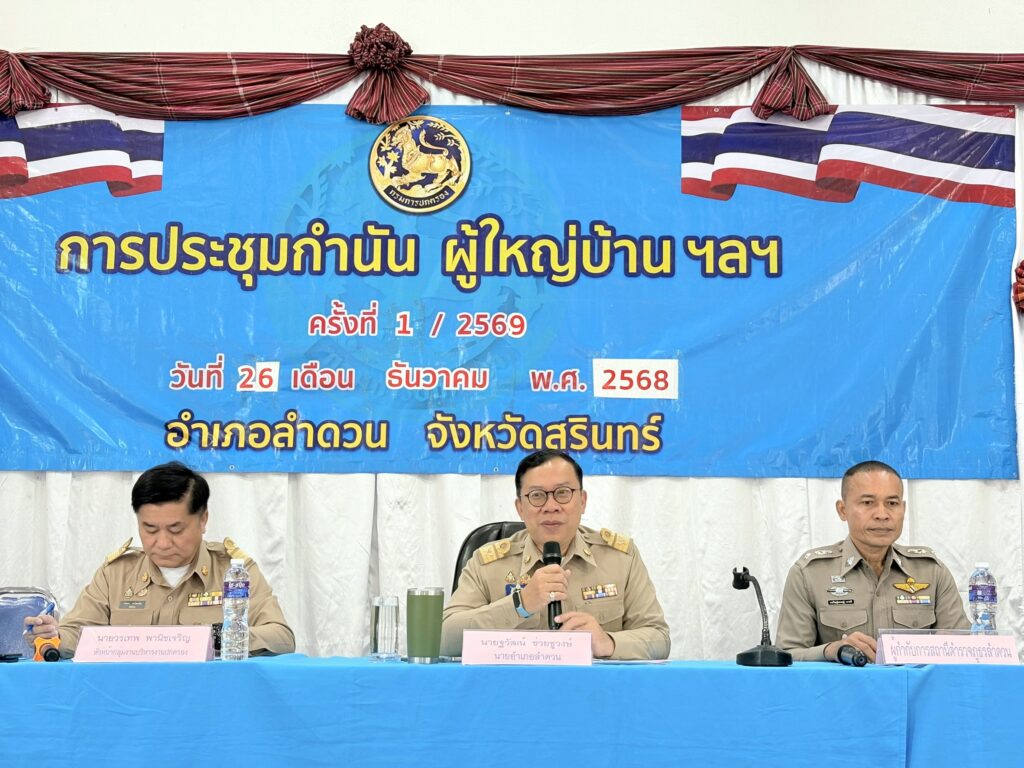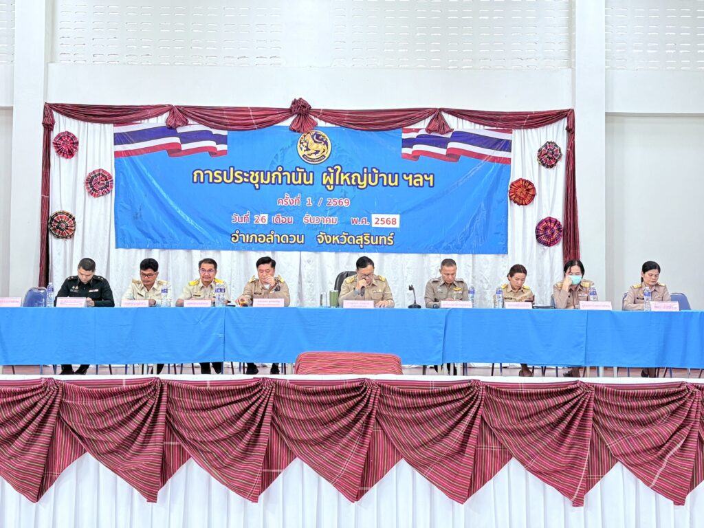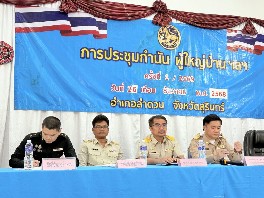 วันที่ 26 ธันวาคม 2568 เวลา 09.00 น. นายศิริบูรณ์ ดวงแว่ว เกษตรอำเภอลำดวน มอบหมายให้นายพินิจ มังกร นักวิชาการส่งเสริมการเกษตรชำนาญการ เข้าร่วมการประชุมกำนัน ผู้ใหญ่บ้าน ของอำเภอลำดวน ครั้งที่ 1/2569 ประจำเดือนมกราคม พ.ศ. 2569 เพื่อชี้แจงข้อราชการต่างๆของทางสำนักงานเกษตรอำเภอลำดวน โดยมีนายฐวัฒน์ ช่วยชูวงษ์ นายอำเภอลำดวน เป็นประธานในการประชุม มีหัวหน้าส่วนราชการ กำนัน ผู้ใหญ่บ้าน เข้าร่วมการประชุม จำนวน 200 ราย ณ หอประชุมที่ว่าการอำเภอลำดวน ตำบลลำดวน อำเภอลำดวน จังหวัดสุรินทร์