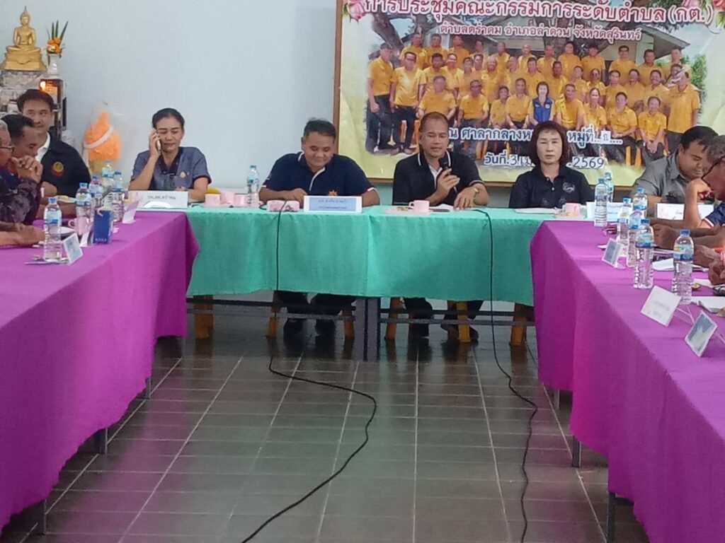 วันที่ 3 เมษายน 2569 เวลา 09.00 น. นายศิริบูรณ์ ดวงแว่ว เกษตรอำเภอลำดวน มอบหมายให้นายธราธร ประดับสุข นักวิชาการส่งเสริมการเกษตรชำนาญการ เข้าร่วมประชุมคณะกรรมการระดับตำบล (กต.) ตำบลตรำดม เพื่อชี้แจงข้อราชการต่างๆของทางสำนักงานเกษตรอำเภอ มีผู้นำชุมชนและหัวหน้าส่วนราชการเข้าร่วมประชุม จำนวน 50 ราย ณ ที่ทำการชมรมกำนันผู้ใหญ่บ้านตำบลตรำดม อำเภอลำดวน จังหวัดสุรินทร์