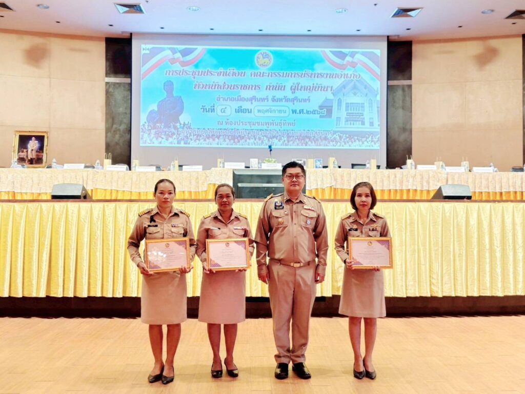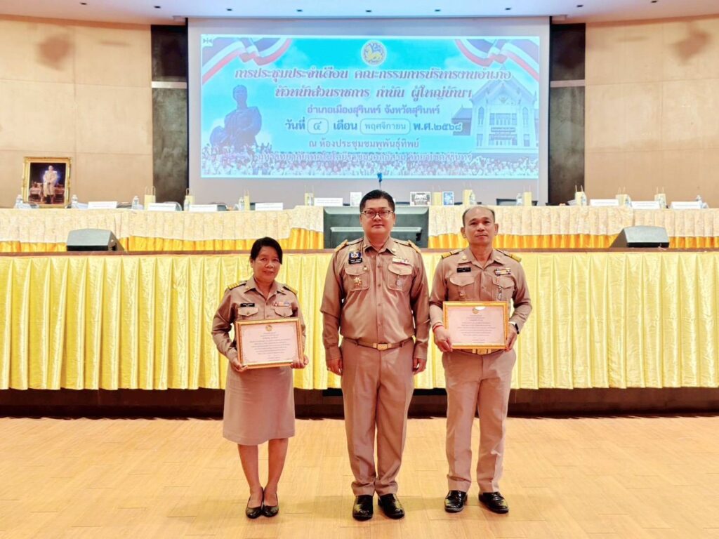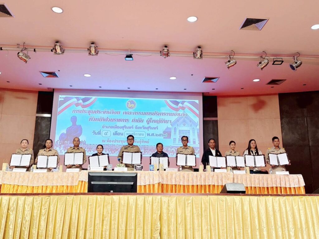 วันที่ 4 พฤศจิกายน 2568 เวลา 09.30 น. นางอารีย์ ใจกล้า เกษตรอำเภอเมืองสุรินทร์ มอบหมายให้นางสาวประภาภรณ์ คูสูงเนิน ตำแหน่งนักวิชาการส่งเสริมการเกษตรชำนาญการพิเศษ สังกัดสำนักงานเกษตรอำเภอเมืองสุรินทร์ จังหวัดสุรินทร์ ร่วมประชุมอำเภอเมืองสุรินทร์ ประจำเดือนพฤศจิกายน 2568 เพื่อแจ้งข้อราชการสำคัญที่เกี่ยวข้องในการบูรณาการทำงานร่วมกันในพื้นที่ให้สำเร็จบรรลุวัตถุประสงค์ตามเป้าหมาย ณ ห้องประชุมชมพูพันธุ์ทิพย์ มหาวิทยาลัยเทคโนโลยีราชมงคลอีสาน วิทยาเขตสุรินทร์อำเภอเมืองสุรินทร์ จังหวัดสุรินทร์ โดยมี นายรองรัตน์ จงอุตสาห์ นายอำเภอเมืองสุรินทร์ เป็นประธานการประชุม โดยมีผู้เข้าร่วมประชุมกว่า 900 ราย