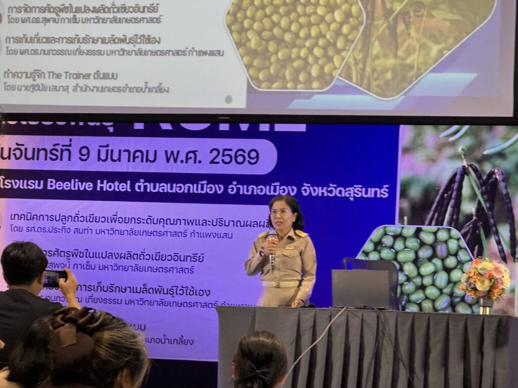 āļ™āļēāļĒāļ˜āļ™āļ§āļ™āļīāļŠāļĒāđŒ  āļžāļ§āļ‡āļžāļĨāļ­āļĒ āđ€āļāļĐāļ•āļĢāļ­āļģāđ€āļ āļ­āļžāļ™āļĄāļ”āļ‡āļĢāļąāļ āļžāļĢāđ‰āļ­āļĄāļ™āļēāļ‡āļŠāļēāļ§āļˆāļēāļĢāļļāļžāļĢāļĢāļ“ āļĨāļ­āļĒāļ›āļĢāļ°āđ‚āļ„āļ™ āļ™āļąāļāļ§āļīāļŠāļēāļāļēāļĢāļŠāđˆāļ‡āđ€āļŠāļĢāļīāļĄāļāļēāļĢāđ€āļāļĐāļ•āļĢāļŠāļģāļ™āļēāļāļāļēāļĢ āđ€āļ‚āđ‰āļēāļĢāđˆāļ§āļĄāļāļēāļĢāļ­āļšāļĢāļĄāđ€āļŠāļīāļ‡āļ›āļāļīāļšāļąāļ•āļīāļāļēāļĢ āļŦāļĨāļąāļāļŠāļđāļ•āļĢ â€œTrain the trainer āđ€āļ—āļ„āđ‚āļ™āđ‚āļĨāļĒāļĩāļāļēāļĢāļœāļĨāļīāļ•āļžāļ·āļŠāļŦāļĨāļąāļ‡āļ™āļēāđāļšāļšāļ„āļĢāļšāļ§āļ‡āļˆāļĢ : āļ–āļąāđˆāļ§āđ€āļ‚āļĩāļĒāļ§āļžāļąāļ™āļ˜āļļāđŒ KUML” āđ‚āļ”āļĒ āļ™āļēāļ‡āļĢāļąāļ•āļ”āļē  āļ„āļ‡āļŠāļĩāđ„āļžāļĢ āđ€āļāļĐāļ•āļĢāļˆāļąāļ‡āļŦāļ§āļąāļ”āļŠāļļāļĢāļīāļ™āļ—āļĢāđŒ āđ€āļ›āđ‡āļ™āļ›āļĢāļ°āļ˜āļēāļ™āļāļĨāđˆāļēāļ§āđ€āļ›āļīāļ”āļāļēāļĢāļ­āļšāļĢāļĄ āļ—āļąāđ‰āļ‡āļ™āļĩāđ‰āļ™āļēāļĒāļ§āļĩāļĢāļĻāļąāļāļ”āļīāđŒ  āļšāļļāļāđ€āļŠāļīāļ āļĢāļ­āļ‡āļ­āļ˜āļīāļšāļ”āļĩāļāļĢāļĄāļŠāđˆāļ‡āđ€āļŠāļĢāļīāļĄāļāļēāļĢāđ€āļāļĐāļ•āļĢ āđāļĨāļ°āļ§āđˆāļēāļ—āļĩāđˆ āļĢ.āļ­.āļ™āļąāļāļŠāļąāļĒ  āđāļĒāđ‰āļĄāļžāļīāļāļļāļĨāļŠāļāļļāļĨ āļœāļđāđ‰āļ­āļģāļ™āļ§āļĒāļāļēāļĢāļāļĨāļļāđˆāļĄāļŠāđˆāļ‡āđ€āļŠāļĢāļīāļĄāļžāļ·āļŠāļ™āđ‰āļģāļĄāļąāļ™āđāļĨāļ°āļžāļ·āļŠāļ•āļĢāļ°āļāļđāļĨāļ–āļąāđˆāļ§ āļāļĨāđˆāļēāļ§āļ™āđ‚āļĒāļšāļēāļĒāļāļēāļĢāļ—āļģāļ‡āļēāļ™āļŠāđˆāļ‡āđ€āļŠāļĢāļīāļĄāļāļēāļĢāļ›āļĨāļđāļāļ–āļąāđˆāļ§āđ€āļ‚āļĩāļĒāļ§ KUML āļ‚āļ­āļ‡āļāļĢāļĄāļŠāđˆāļ‡āđ€āļŠāļĢāļīāļĄāļāļēāļĢāđ€āļāļĐāļ•āļĢ āđāļĨāļ°āļāļēāļĢāļŠāļĢāđ‰āļēāļ‡ the trainer (online) āđāļĨāļ°āļ„āļļāļ“āļāļąāļĨāļĒāļēāļĢāļąāļ•āļ™āđŒ  āļĢāļąāļ•āļ™āļ°āļˆāļīāļ•āļĢ āļœāļđāđ‰āļ­āļģāļ™āļ§āļĒāļāļēāļĢāļ–āđˆāļēāļĒāļ—āļ­āļ”āđ€āļ—āļ„āđ‚āļ™āđ‚āļĨāļĒāļĩ āļŠāļ—.āļŠāļ§āļ—āļŠ. āļāļĨāđˆāļēāļ§āļ™āđ‚āļĒāļšāļēāļĒāļāļēāļĢāļ™āļģāļ‡āļēāļ™āļ§āļīāļˆāļąāļĒāđ€āļĢāļ·āđˆāļ­āļ‡āļ–āļąāđˆāļ§āđ€āļ‚āļĩāļĒāļ§āļžāļąāļ™āļ˜āļļāđŒ KUML āđ„āļ›āđƒāļŠāđ‰āļ›āļĢāļ°āđ‚āļĒāļŠāļ™āđŒ āļ‚āļ­āļ‡ āļŠāļ§āļ—āļŠ. āļ“ āđ‚āļĢāļ‡āđāļĢāļĄ Beelive Hotel āļ•āļģāļšāļĨāļ™āļ­āļāđ€āļĄāļ·āļ­āļ‡ āļ­āļģāđ€āļ āļ­āđ€āļĄāļ·āļ­āļ‡āļŠāļļāļĢāļīāļ™āļ—āļĢāđŒ āļˆāļąāļ‡āļŦāļ§āļąāļ”āļŠāļļāļĢāļīāļ™āļ—āļĢāđŒ