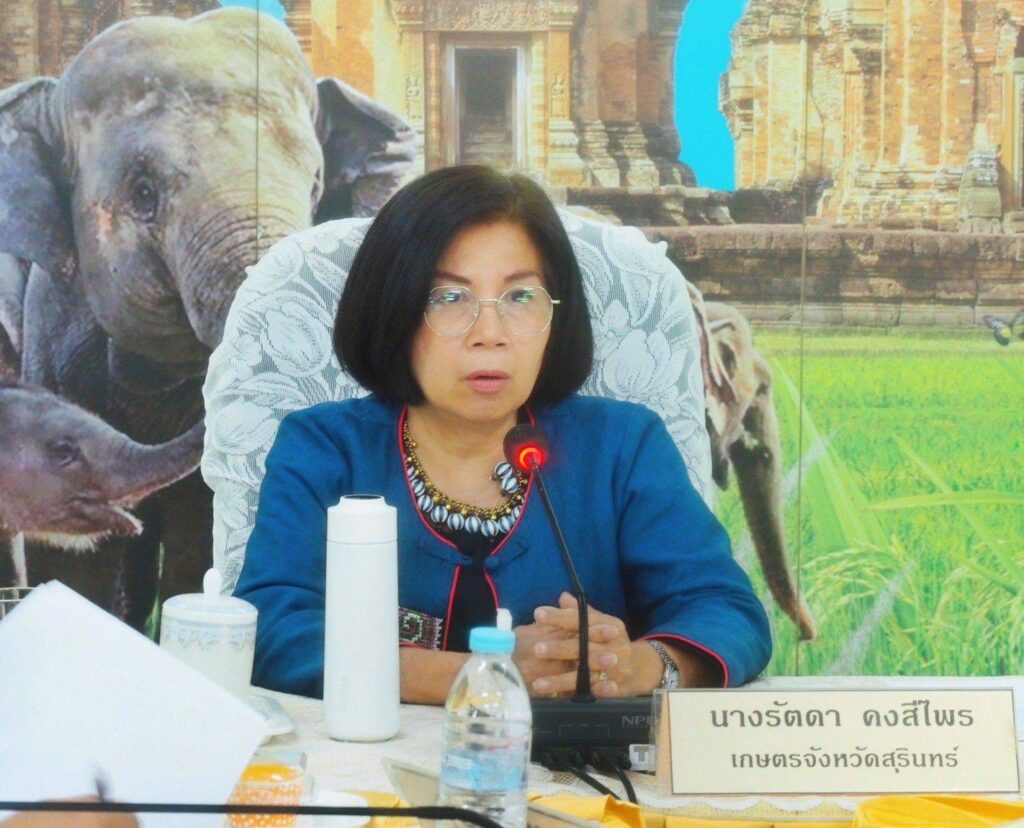 ณ ห้องประชุมหอมมะลิ โดยมี นางรัตดา คงศรีไพร เกษตรจังหวัดสุรินทร์ การประชุมดังกล่าวมีวัตถุประสงค์เพื่อร่วมสนองงานดำเนินโครงการเกษตรเพื่ออาหารกลางวันตามพระราชดำริ