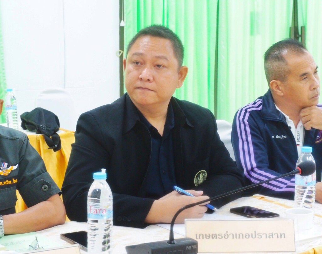 นายสุพจน์ ภูมิสุข เกษตรอำเภอปราสาท พร้อมด้วยครูผู้รับผิดชอบโครงการจากโรงเรียนในพื้นที่เป้าหมายของอำเภอปราสาท (โรงเรียนตำรวจตะเวรชายแดน พีระยานุเคราะห์ 2) ร่วมประชุมบูรณาการขับเคลื่อนงานโครงการเกษตรเพื่ออาหารกลางวัน