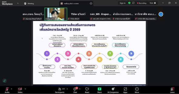 วันที่ 15 ธันวาคม 2568 นางสาวมะลิวรรณ จุรุทา เกษตรอำเภอรัตนบุรี มอบหมายให้ นางสาวพจนีย์ แก้วทวี นักวิชาการส่งเสริมการเกษตรชำนาญการพิเศษ เข้าร่วมการประชุมชี้แจงแนวทางการเสนอผลงานส่งเสริมการเกษตรเพื่อสมัครรางวัลเลิศรัฐ ประจำปี 2569 ผ่านระบบออนไลน์ (Zoom meeting) ณ สำนักงานเกษตรอำเภอรัตนบุรี จังหวัดสุรินทร์