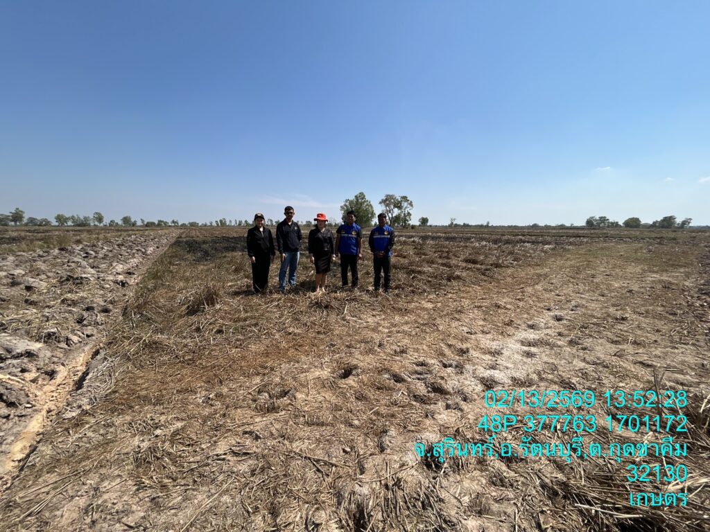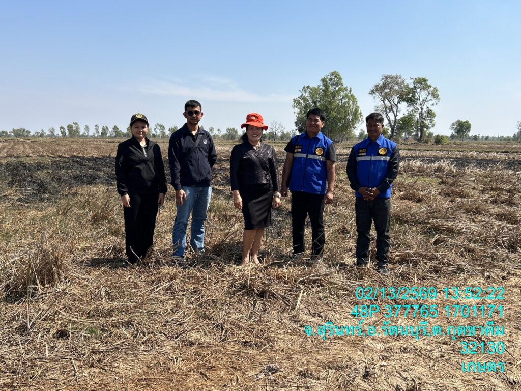 วันที่ 13 กุมภาพันธ์ 2569 นางสาวมะลิวรรณ จุรุทา เกษตรอำเภอรัตนบุรี พร้อมด้วย เจ้าหน้าที่สำนักงานเกษตรอำเภอรัตนบุรี ลงพื้นที่ตรวจสอบจุดความร้อน (Hot Spot) ในการเผาพื้นที่การเกษตร ตำบลกุดขาคีม ทั้งนี้ได้สร้างความเข้าใจ การรับรู้ และบทลงโทษให้แก่เกษตรกรรับทราบ ณ ตำบลกุดขาคีม อำเภอรัตนบุรี จังหวัดสุรินทร์![]()