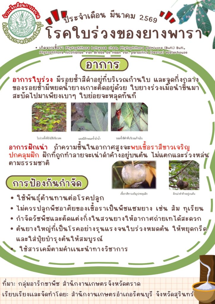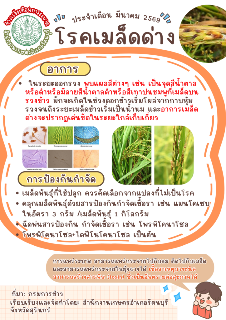 เกษตรรัตนบุรี ขอประชาสัมพันธ์เเจ้งเตือนการระบาดประจำเดือนมีนาคม 2569 Leave a Comment / By rattanaburi / 6 มีนาคม 2026