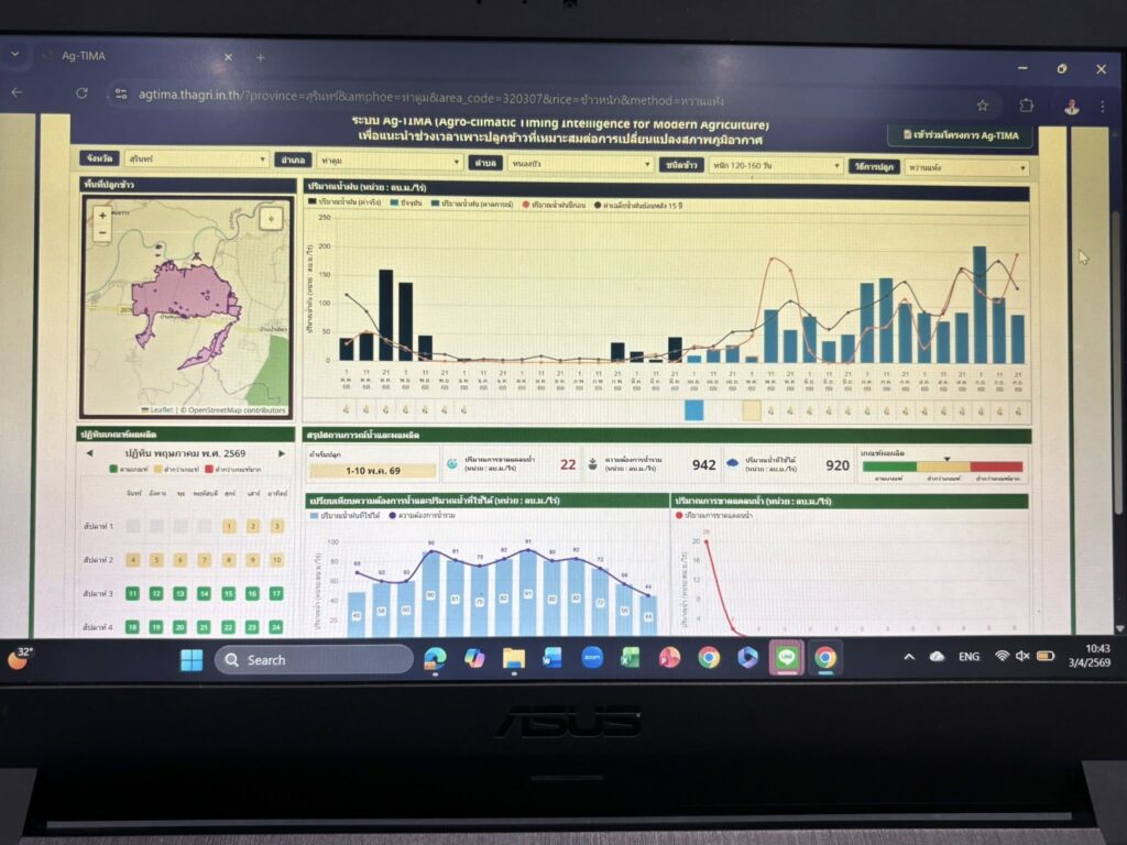 นางสาวมะลิวรรณ จุรุทา เกษตรอำเภอรัตนบุรี มอบหมายให้ เจ้าหน้าที่สำนักงานเกษตรอำเภอรัตนบุรี เข้าร่วมอบรมเชิงปฏิบัติการ “ระบบ Agro-climatic Timing Intelligence for Modern Agriculture (Ag-TIMA)” เพื่อสร้างความเข้าใจเกี่ยวกับการทำงานของระบบ Ag-TIMA เสริมสร้างทักษะในการตีความข้อมูลจาก Dashboard และสนับสนุนให้ผู้เข้าร่วมสามารถนำข้อมูลไปใช้ในการวางแผนการปลูกข้าวอย่างแม่นยำและยั่งยืน ซึ่งจะช่วยยกระดับขีดความสามารถด้านการบริหารจัดการการผลิตข้าวภายใต้สภาวะภูมิอากาศที่เปลี่ยนแปลงอย่างต่อเนื่อง จัดโดย สำนักงานพัฒนาวิทยาศาสตร์และเทคโนโลยีแห่งชาติ (สวทช.)