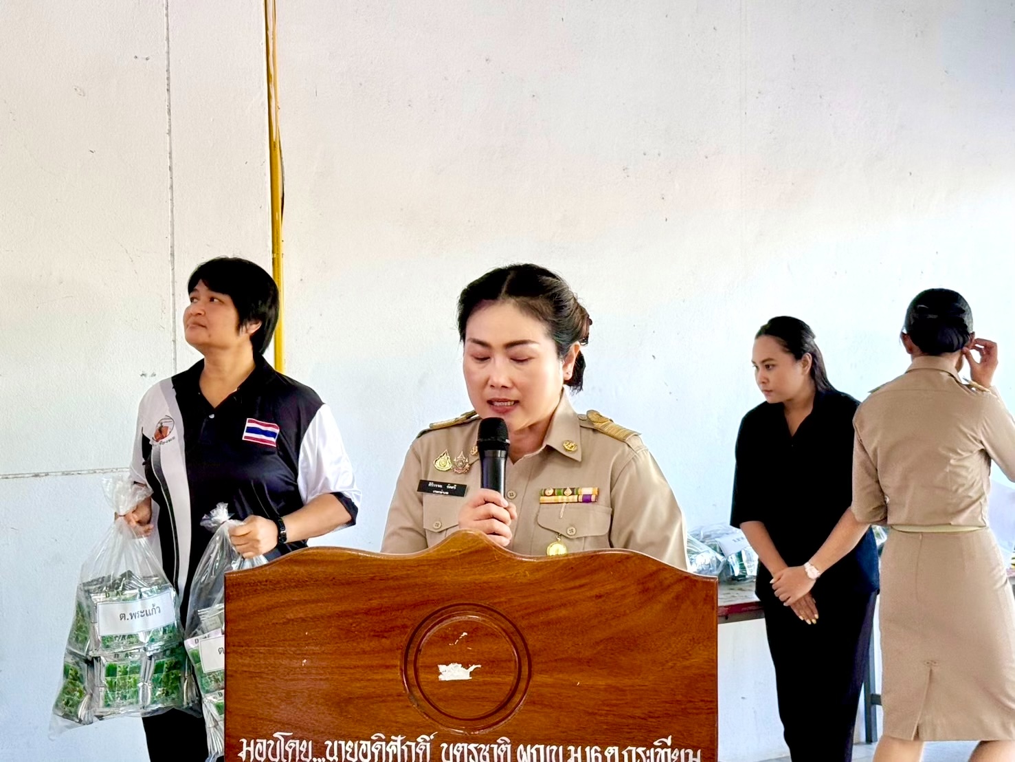นางศิริวรรณ ทัดศรี เกษตรอำเภอสังขะ พร้อมด้วยเจ้าหน้าที่สำนักงานเกษตรอำเภอสั…