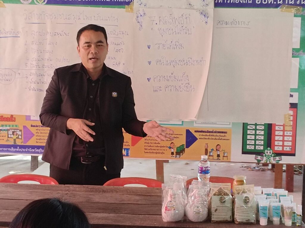 นายพิทักษ์ เสาวโค เกษตรอำเภอสนม มอบหมายให้นางสาวนารีรัตน์ แสนเมืองชิน นักวิชาการส่งเสริมการเกษตรชำนาญการ พร้อมด้วยเจ้าหน้าที่สำนักงานเกษตรอำเภอสนม จัดอบรมเกษตรกรโครงการส่งเสริมและพัฒนาผู้ประกอบการวิสาหกิจชุมชน กิจกรรมส่งเสริมและพัฒนาผู้ประกอบการวิสาหกิจชุมชน พัฒนาศักยภาพวิสาหกิจชุมชน พัฒนาทักษะกรรมการบริหารกิจการรวิสาหกิจชุมชน ณ ที่ทำการกลุ่มวิสาหกิจชุมชนสมุนไพรบ้านแท่น หมู่ที่ 5 ตำบลนานวน อำเภอสนม จังหวัดสุรินทร์ เกษตรกรเป้าหมาย 10 ราย