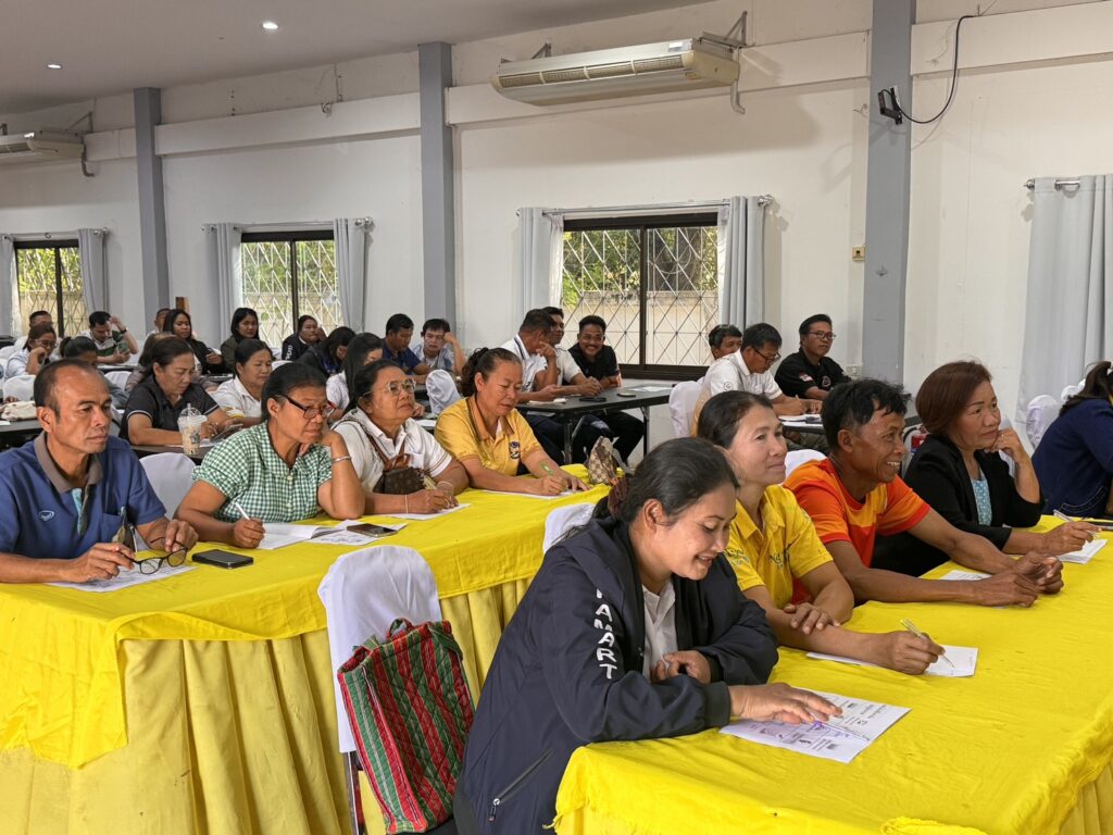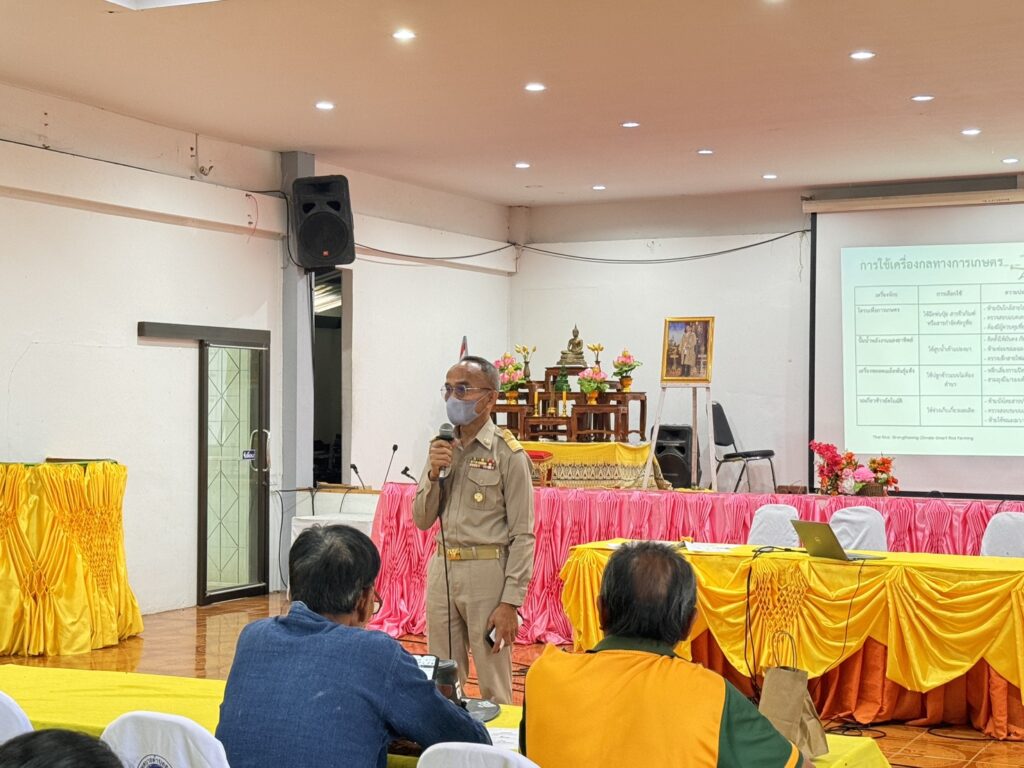 นายพิทักษ์ เสาวโค เกษตรอำเภอสนม มอบหมายให้เจ้าหน้าที่สำนักงานเกษตรอำเภอสนม จัดการฝึกอบรมหลักสูตร การทำนาด้วยเทคโนโลยีที่เท่าทันต่อภูมิอากาศ (เกษตรกรนำร่อง L4 L5) โครงการเพิ่มศักยภาพการปลูกข้าวที่เท่าทันต่อภูมิอากาศ :Thai Rice GCF ณ ห้องประชุมเทศบาลตำบลสนม จังหวัดสุรินทร์