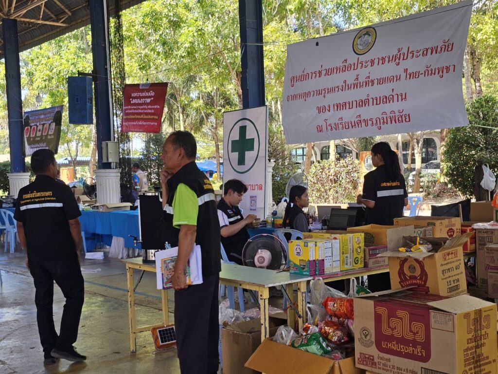 วันศุกร์ที่ 19 ธันวาคม 2568 เวลา 10.30 น. นายสมพงษ์ มีสิทธิ์ เกษตรอำเภอศีขรภูมิ พร้อมด้วยเจ้าหน้าที่สำนักงานเกษตรอำเภอศีขรภูมิ ออกเยี่ยมเยียนและมอบสิ่งของอุปโภคบริโภค ให้กับศูนย์พักพิงชั่วคราวที่ดูแลผู้อพยพที่หนีภัยการสู้รบตามแนวชายแดนไทย-กัมพูชา ณ บ้านทุ่งราม ตำบลผักไหม โรงเรียนยางวิทยาคาร ตำบลยาง และโรงเรียนศีขรภูมิพิสัย ตำบลระแงง อำเภอศีขรภูมิ จังหวัดสุรินทร์