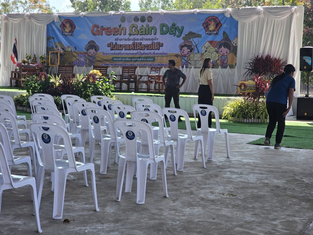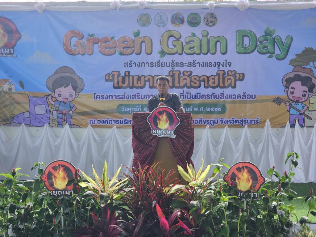 วันที่ 19 เดือนกุมภาพันธ์ พ.ศ. 2569 นายสมพงษ์ มีสิทธิ์ เกษตรอำเภอศีขรภูมิ พร้อมด้วยเจ้าหน้าที่สำนักงานเกษตรอำเภอศีขรภูมิ ร่วมกับสำนักงานเกษตรจังหวัดสุรินทร์ ร่วมกันจัดเตรียมสถานที่ จัดงาน Green Gain Day ” การสร้างการเรียนรู้ และเเรงจูงใจ “ไม่เปาแต่ได้รายได้” รวมทั้งประสานงานหน่วยงานที่เกี่ยวข้องในการจัดสถานนีเรียนรู้ กว่า 10 สถานี