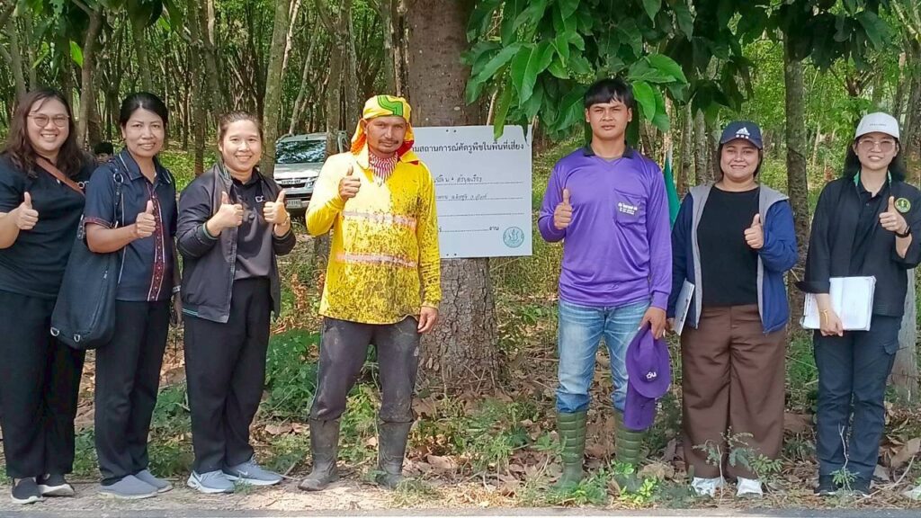 วันที่ 19 มีนาคม 2569 นายสมพงษ์ มีสิทธิ์ เกษตรอำเภอศีขรภูมิ มอบหมายให้นางสาวพัณณิตา ชัยตั้งจิต นักวิชาการส่งเสริมการเกษตรปฏิบัติการ นางสมพร สันทาลุนัย นักวิชาการส่งเสริมการเกษตร พร้อมเจ้าหน้าที่กลุ่มอารักขาพืช สำนักงานเกษตรจังหวัดสุรินทร์ รับการติดตามการดำเนินงานการสำรวจแปลงติดตามสถานการณ์การระบาดศัตรูพืช โครงการส่งเสริมการจัดการสุขภาพพืชเพื่อเพิ่มประสิทธิภาพการผลิตสินค้าเกษตร กิจกรรมเฝ้าระวังและเตรียมความพร้อมรับมือสถานการณ์การระบาดเชิงรุก สำรวจติดตามสถานการณ์การระบาดศัตรูพืช และการแจ้งเตือนสนับสนุนการสำรวจติดตามสถานการณ์ศัตรูพืชในพื้นที่เสี่ยงที่ปลูกพืชเศรษฐกิจ จากเจ้าหน้าที่กองส่งเสริมการอารักขาพืชและจัดการดินปุ๋ย กรมส่งเสริมการเกษตร ทั้งนี้ได้รับแนวทางในการปฏิบัติงานในพื้นที่ร่วมกันระหว่างเจ้าหน้าที่และเกษตรกร การสำรวจ ติดตาม และป้องกันการระบาดศัตรูพืช พร้อมแลกเปลี่ยนความคิดเห็น ปัญหา/อุปสรรค และข้อเสนอแนะเพื่อพัฒนางาน ณ แปลงติดตามยางพารา นายวันเฉลิม ศรีบุญเรือง บ้านหนองแสง หมู่ที่ 11 ตำบลกุดหวาย อำเภอศีขรภูมิ จังหวัดสุรินทร์
