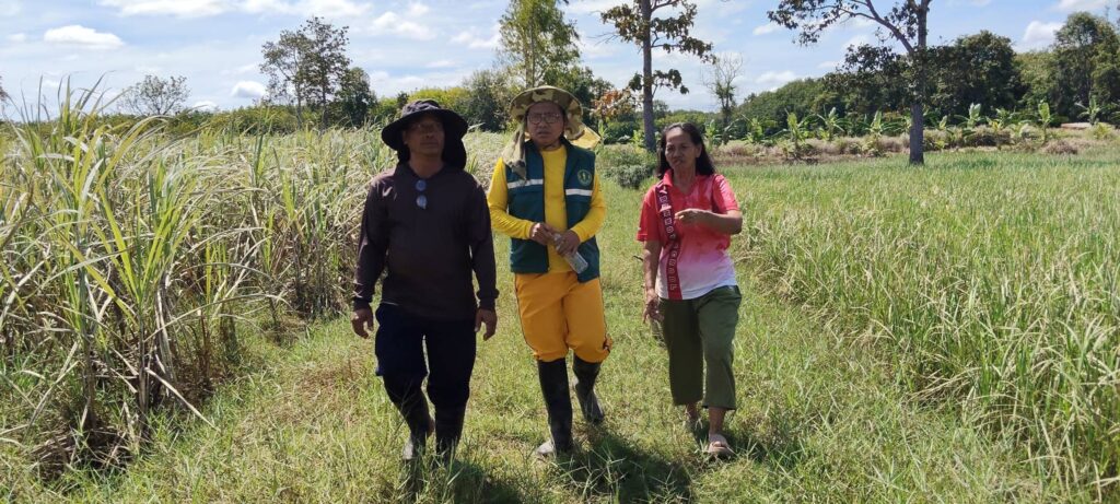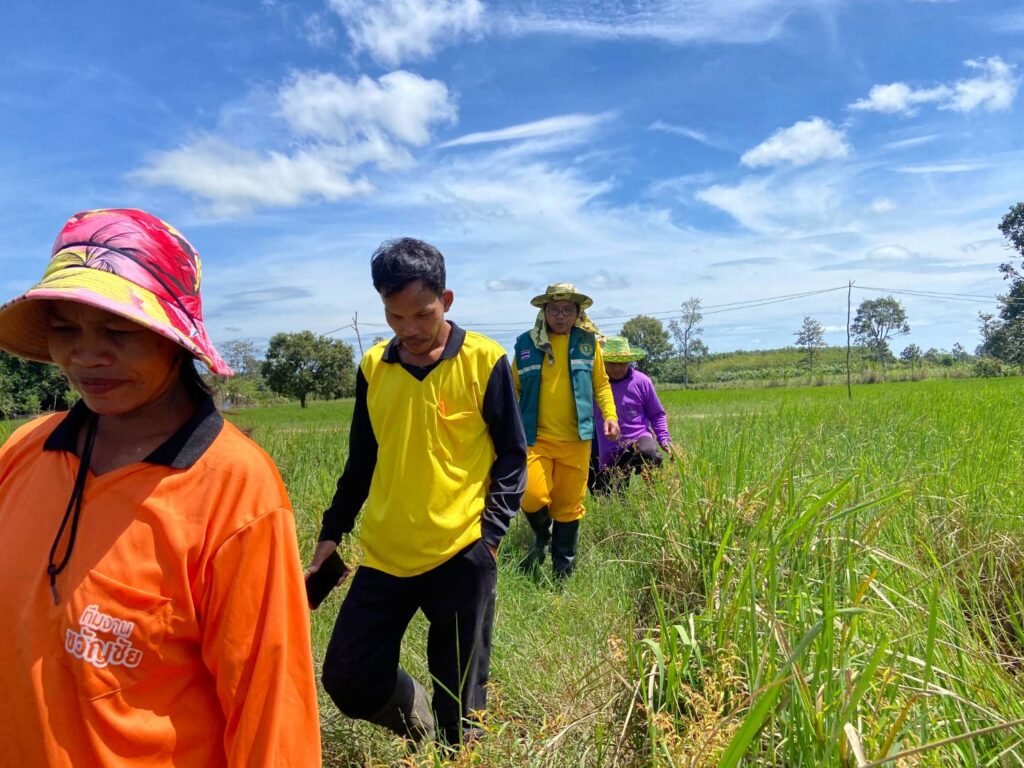 นางสาววิชชุลดา จันทรตระกูล เกษตรศรีณรงค์ มอบหมาย นายไกรสร โภคทรัพย์ นักวิชาการส่งเสริมการเกษตรปฏิบัติการ ร่วมลงพื้นที่ดำเนินการตรวจประเมินความเสียหายแปลงเกษตรกร