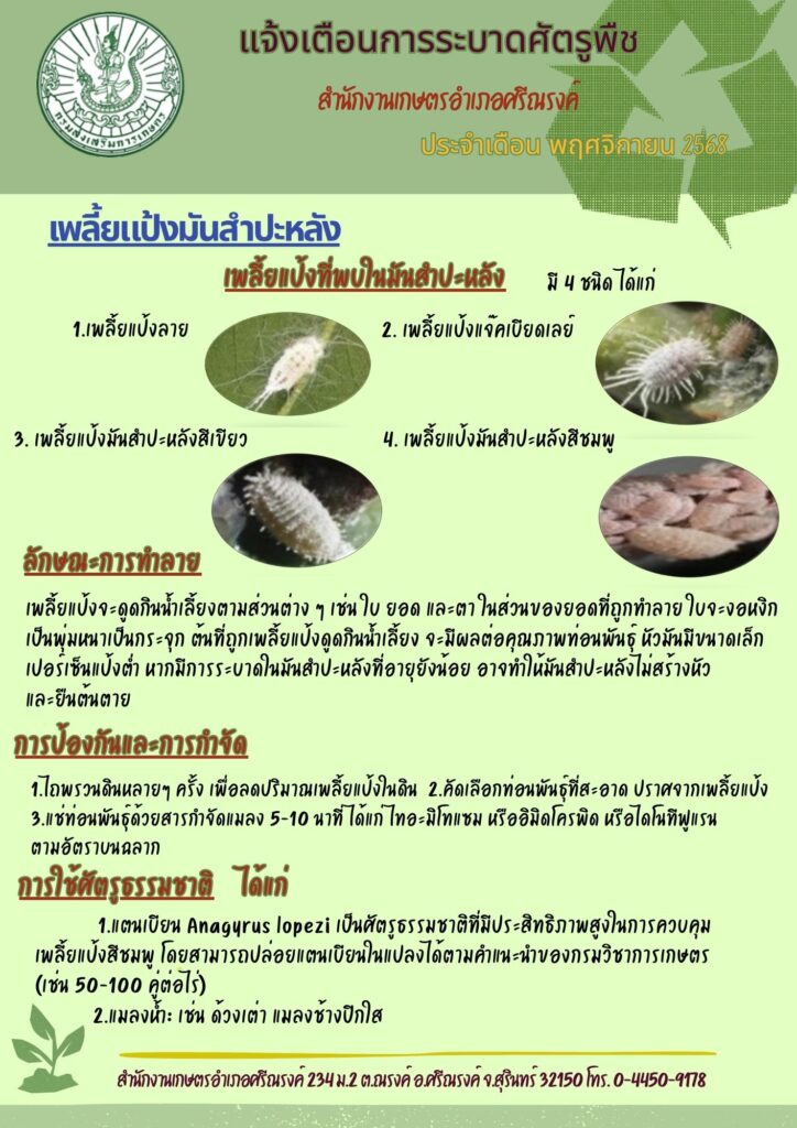 เตือนการระบาดเพลี้ยแป้งมันสำปะหลัง