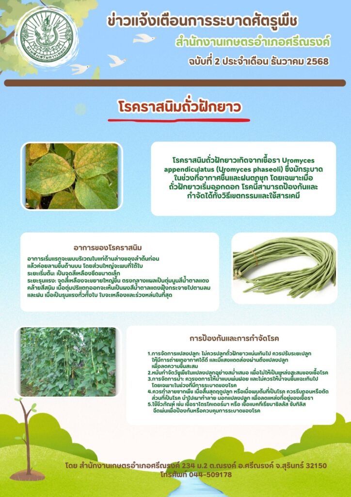 เตือนการระบาด โรคราสนิมถั่วฝักยาว