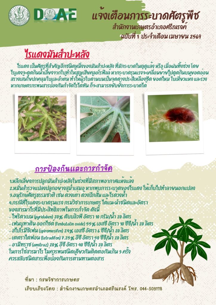 📢 ประกาศแจ้งเตือน: เฝ้าระวังการระบาดของ “ไรแดง” ในมันสำปะหลัง