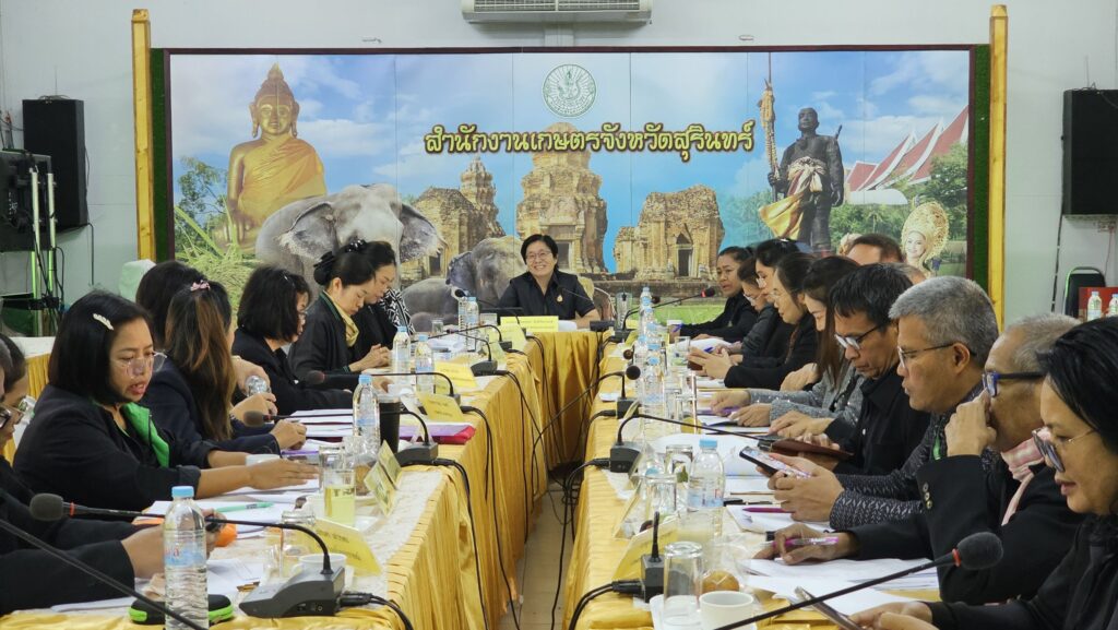 โดยมี นางสาวสร้อยเพชร ตันติรัตนานนท์ หัวหน้ากลุ่มยุทธศาสตร์และสารสนเทศ เป็นประธานการประชุม ณ ห้องประชุมหอมมะลิ สำนักงานเกษตรจังหวัดสุรินทร์