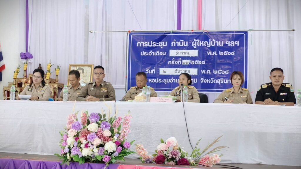 นางสกาวรัตน์ ทัดศรี เกษตรอำเภอท่าตูม ร่วมประชุมกำนัน ผู้ใหญ่บ้าน ฯลฯ ครั้งที่ 11/2568 ประจำเดือนธันวาคม 2568 โดยมี นางสาววันเพ็ญ หาญเสมอ นายอำเภอท่าตูม เป็นประธานการประชุม ณ หอประชุมที่ว่าการอำเภอท่าตูม จังหวัดสุรินทร์ การประชุมในครั้งนี้เพื่อประชาสัมพันธ์และชี้แจงข้อมูลข่าวสารและนโยบายด้านการเกษตร มีวาระการชี้แจงดังนี้