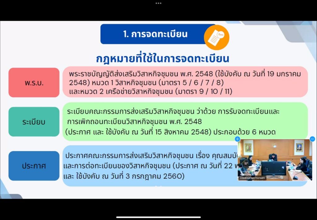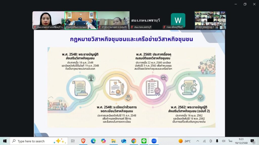 นางสกาวรัตน์ ทัดศรี เกษตรอำเภอท่าตูม พร้อมด้วยนางสาวมนัฐนันท์ ทองมาก นักวิชาการส่งเสริมการเกษตร เข้าร่วมการอบรมพัฒนาทักษะนายทะเบียนวิสาหกิจชุมชน เพื่อสร้างความรู้ ความเข้าใจในการดำเนินงานด้านทะเบียนวิสาหกิจชุมชน แนวทางการให้คำแนะนำวิสาหกิจชุมชนในการจดทะเบียนจัดตั้งนิติบุคคล ภาษีที่เกี่ยวข้องกับวิสาหกิจชุมชน พร้อมทั้งการดำเนินการเพื่อเข้าถึงการส่งเสริมสนับสนุนและพัฒนาทักษะให้กับนายทะเบียนวิสาหกิจชุมชน ผ่านระบบออนไลน์ (Zoom meeting) ระหว่างวันที่ 18-19 ธันวาคม 2568 จากห้องประชุม 4/1 ชั้น 4 อาคาร 1 กรมส่งเสริมการเกษตร ณ สำนักงานเกษตรอำเภอท่าตูมจังหวัดสุรินทร์