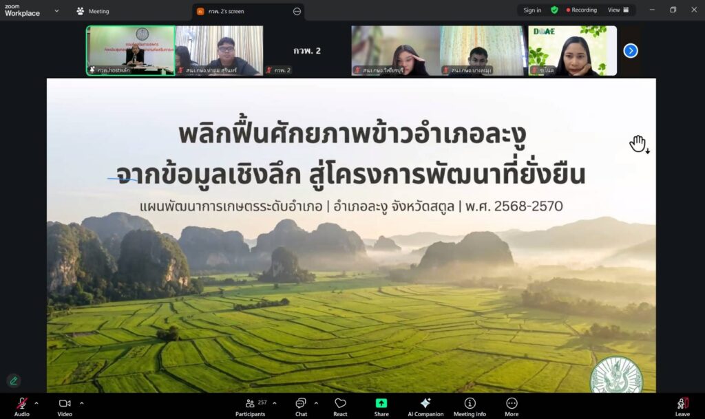 นางสกาวรัตน์ ทัดศรี เกษตรอำเภอท่าตูม มอบหมายให้เจ้าหน้าที่สำนักงานเกษตรอำเภอท่าตูม เข้าร่วมคลินิคให้คำปรึกษาการจัดทำกรอบการพัฒนาการเกษตรเชิงพื้นที่ เพื่อสร้างความเข้าใจในกรอบการพัฒนาการเกษตรเชิงพื้นที่ ให้เป็นไปในทิศทางเดียวกัน และสามารถนำไปปฏิบัติได้อย่างมีประสิทธิภาพในระดับพื้นที่ และเป็นการขับเคลื่อนภารกิจของหน่วยงานให้บรรลุเป้า ผ่านระบบประชุมออนไลน์ Zoom Meeting ณ ห้องประชุมสำนักงานเกษตรอำเภอท่าตูม จังหวัดสุรินทร์