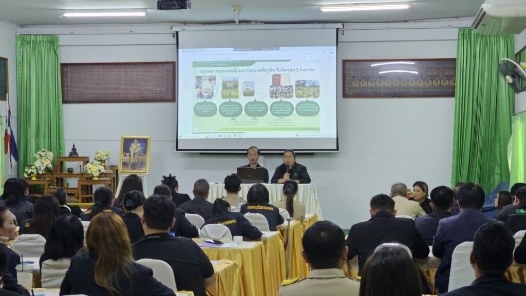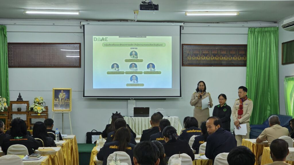 นางสกาวรัตน์ ทัดศรี เกษตรอำเภอท่าตูม พร้อมด้วยเจ้าหน้าที่สำนักงานเกษตรอำเภอท่าตูม ร่วมกิจกรรมการจัดเวทีแลกเปลี่ยนเรียนรู้ระดับอำเภอ (DW) ครั้งที่ 1 ประจำปีงบประมาณ 2569 โครงการพัฒนาเครือข่ายงานส่งเสริมการเกษตร (ระบบส่งเสริมการเกษตร) วัตถุประสงค์เพื่อเป็นพื้นที่เปิดโอกาสให้เจ้าหน้าที่ในสังกัดสำนักงานเกษตรจังหวัดสุรินทร์ ได้ร่วมกันถอดบทเรียน แลกเปลี่ยนแนวทางการดำเนินงานส่งเสริมการเกษตรในพื้นที่ เป็นแบบอย่างที่ดี และเสริมสร้างความร่วมมือในการพัฒนาคุณภาพการทำงานในระดับอำเภออย่างยั่งยืนโดยมีนางรัตดา คงสีไพร เกษตรจังหวัดสุรินทร์ เป็นประธาน ณ ห้องประชุมหอมมะลิ สำนักงานเกษตรจังหวัดสุรินทร์ ตำบลคอโค อำเภอเมืองสุรินทร์ จังหวัดสุรินทร์
