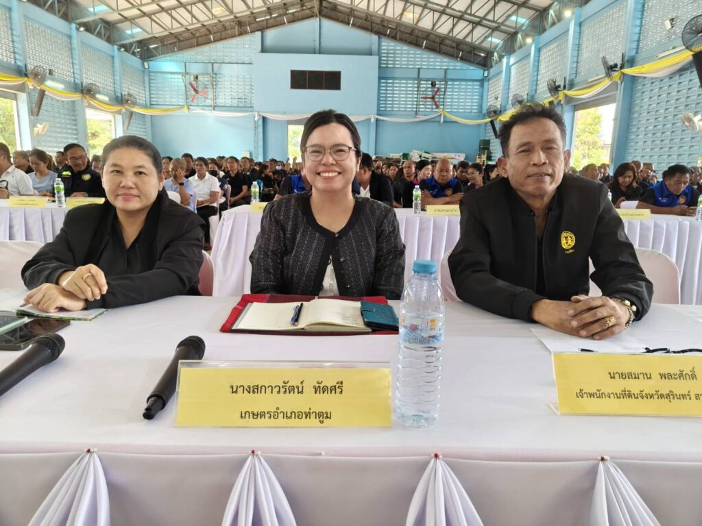 นางสกาวรัตน์ ทัดศรี เกษตรอำเภอท่าตูมเข้าร่วมประชุมชี้เเจงเเนวทางปฏิบัติราชการของ ผู้ว่าราชการจังหวัดสุรินทร์ ณ หอประชุมอำเภอท่าตูม จังหวัดสุรินทร์ เพื่อชี้แจงแนวทางการขับเคลื่อนนโยบายสำคัญของทุกกระทรวง ทบวง กรม ในพื้นที่จังหวัดสุรินทร์ ในโอกาสที่ได้รับการแต่งตั้งดำรงตำแหน่ง ผู้ว่าราชการจังหวัดสุรินทร์ รวมทั้งรับฟังสภาพปัญหา อุปสรรค และข้อขัดข้อง ของประชาชนในระดับพื้นที่